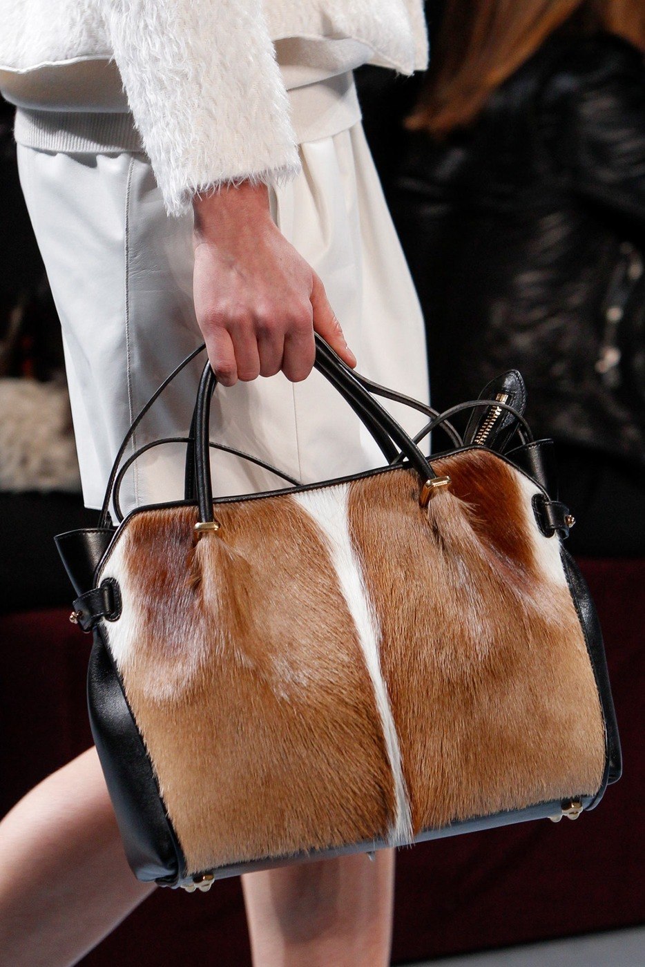 La fourrure promet d’être un succès de la saison. Les concepteurs ont essayé très fort avec ce matériau et nous ont présenté un grand nombre de modèles de fourrure luxueux pouvant souligner le statut de leur maîtresse. Sur le podium, on pouvait voir à la fois des sacs à main entièrement en fourrure et des modèles avec des empiècements décoratifs moelleux. En outre, un tel accessoire doit être de couleur naturelle ou le répéter autant que possible.