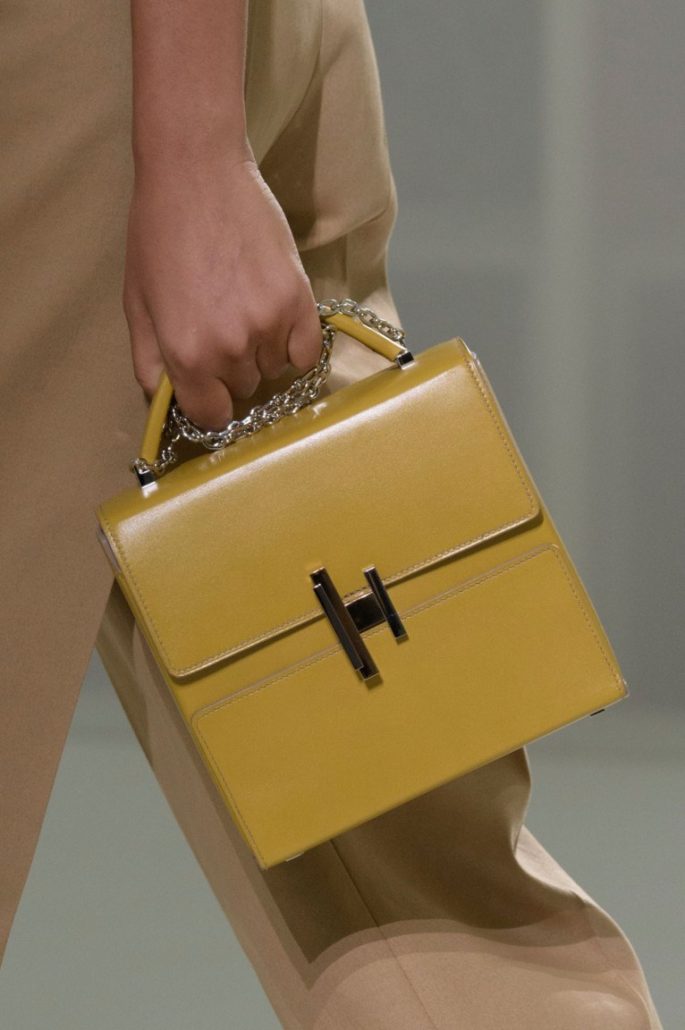 Comme d'habitude, les concepteurs se concentraient sur la peau. C’est à partir de cette matière plastique attrayante et plastique que de grandes parties de leurs collections ont été créées. Au sommet de la popularité, sacs à main rectangulaires, crossbody et hobo.