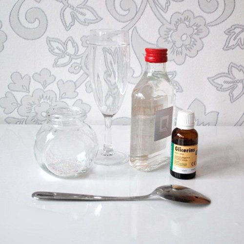 Maintenant, vous devez remplir le futur ballon de liquide. Pour cela, la glycérine est mélangée avec de l'eau en quantités égales. Mais gardez à l'esprit qu'après avoir plongé dans le bonhomme de neige, le niveau de liquide augmente. Pour obtenir un meilleur liquide, ajoutez un peu d’alcool ici à raison de 1 cuillère à soupe de glycérine - 1 cuillère à soupe d’alcool.