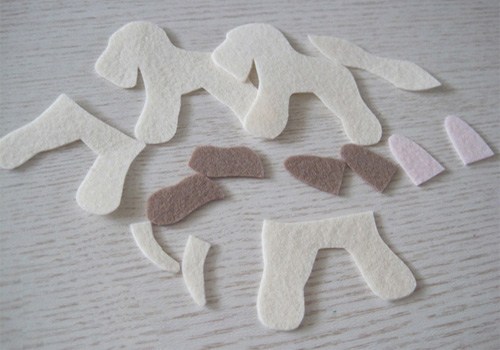 Le modèle de chien doit être imprimé et des détails en feutre. Veuillez noter que toutes les pièces doivent être appariées.