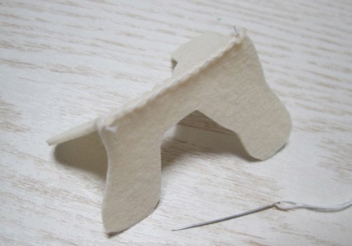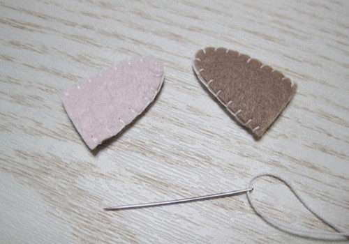 Cousez ensemble les pièces pour les oreilles avec une couture de points. Faites la même chose avec la queue.