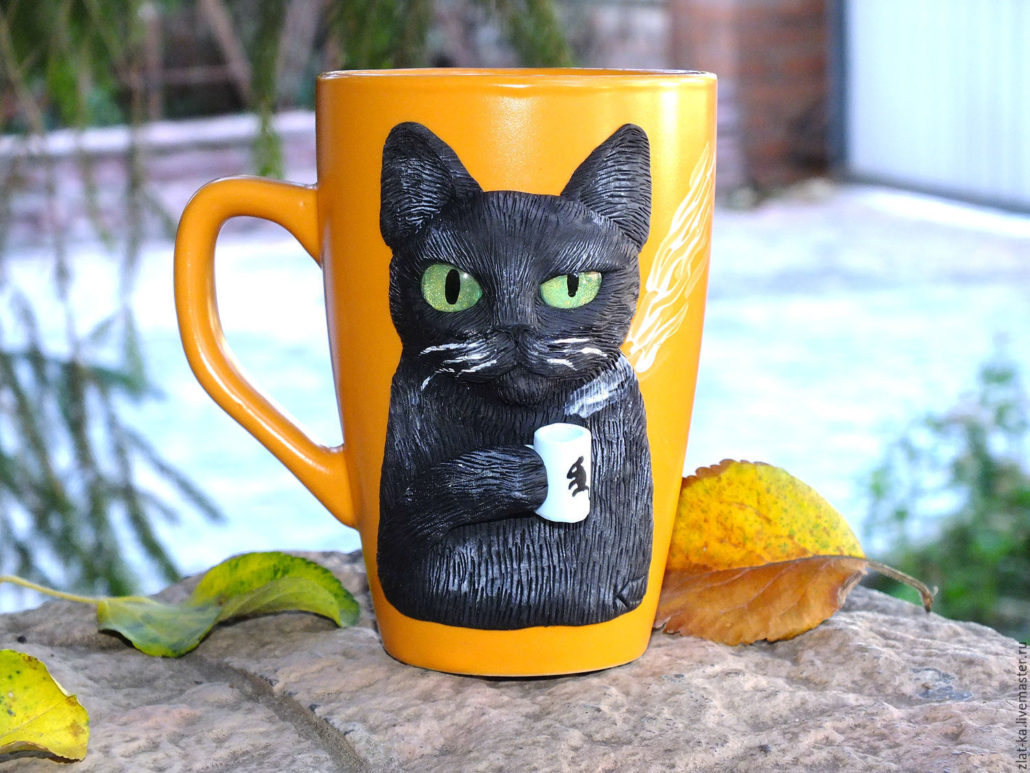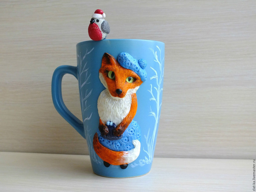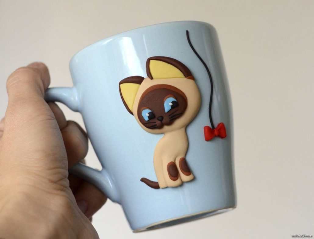 Laver, sécher et dégraisser le bas-relief. En utilisant de la colle résistante à la chaleur, collez la figurine à la tasse. Vous pouvez utiliser une telle tasse au plus tôt dans la journée.