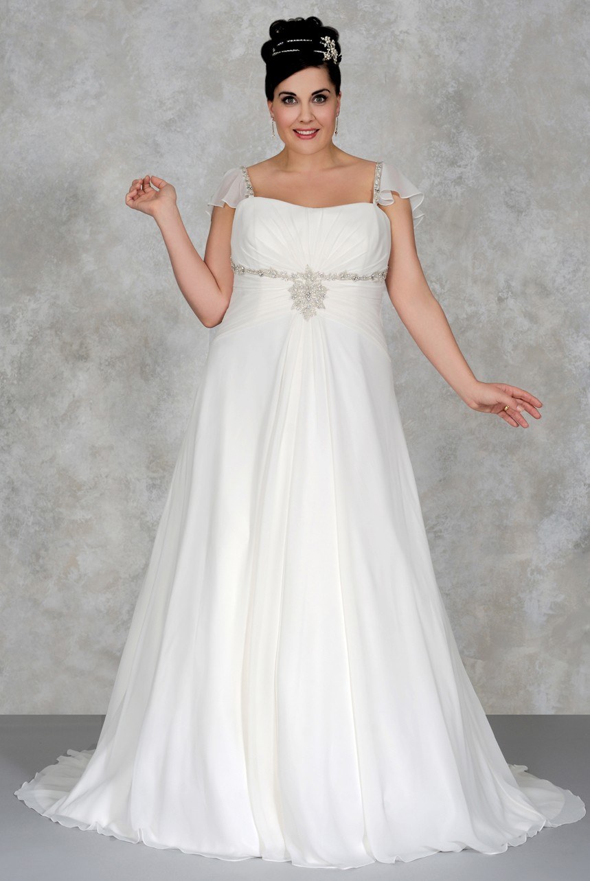 La ligne de robes de mariée de grande taille est assez diverse. Toutes les tenues soulignent la finesse des lignes et des courbes de la figure. L'une des options de robe de mariage les plus réussies pour les femmes en surpoids était une robe à la grecque. Un tel modèle n'a pas perdu de sa pertinence depuis l'Antiquité, son style n'étant soumis à aucun ajustement supplémentaire. La seule différence entre les robes de style grec entre elles réside dans l'option décoration. Ce modèle rend la poitrine parfaite et cache visuellement l'estomac en raison de la taille haute.