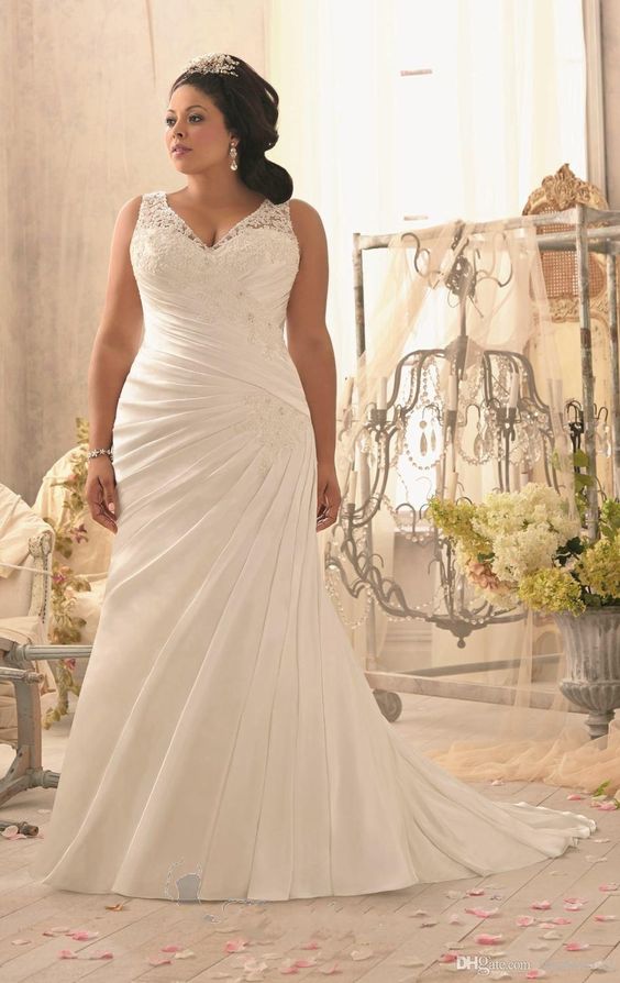 Si un homme a déjà choisi une femme à part entière comme partenaire de vie, cela signifie que tout lui va bien, et vous ne devez donc pas être compliqué à propos des formes rondes et être gêné de porter une robe moulante. Très souvent, les robes de mariée moulantes pour femmes en surpoids sont cousues dans un matériau si dense qui lisse littéralement tous les renflements sur les côtés.Le style de la sirène est le plus commun parmi les robes pour femmes obèses le jour de l'enregistrement du mariage. Les robes skinny conviennent mieux aux femmes à part entière avec un bon dessin visuel du tour de taille. N'oubliez pas de shapewear. Bien sûr, on ne peut pas dire que la mariée se sente à l'aise, mais cela permettra de réduire les irrégularités de la figure à "non". Un bon resserrement du ventre ne fera pas mal à la mariée.