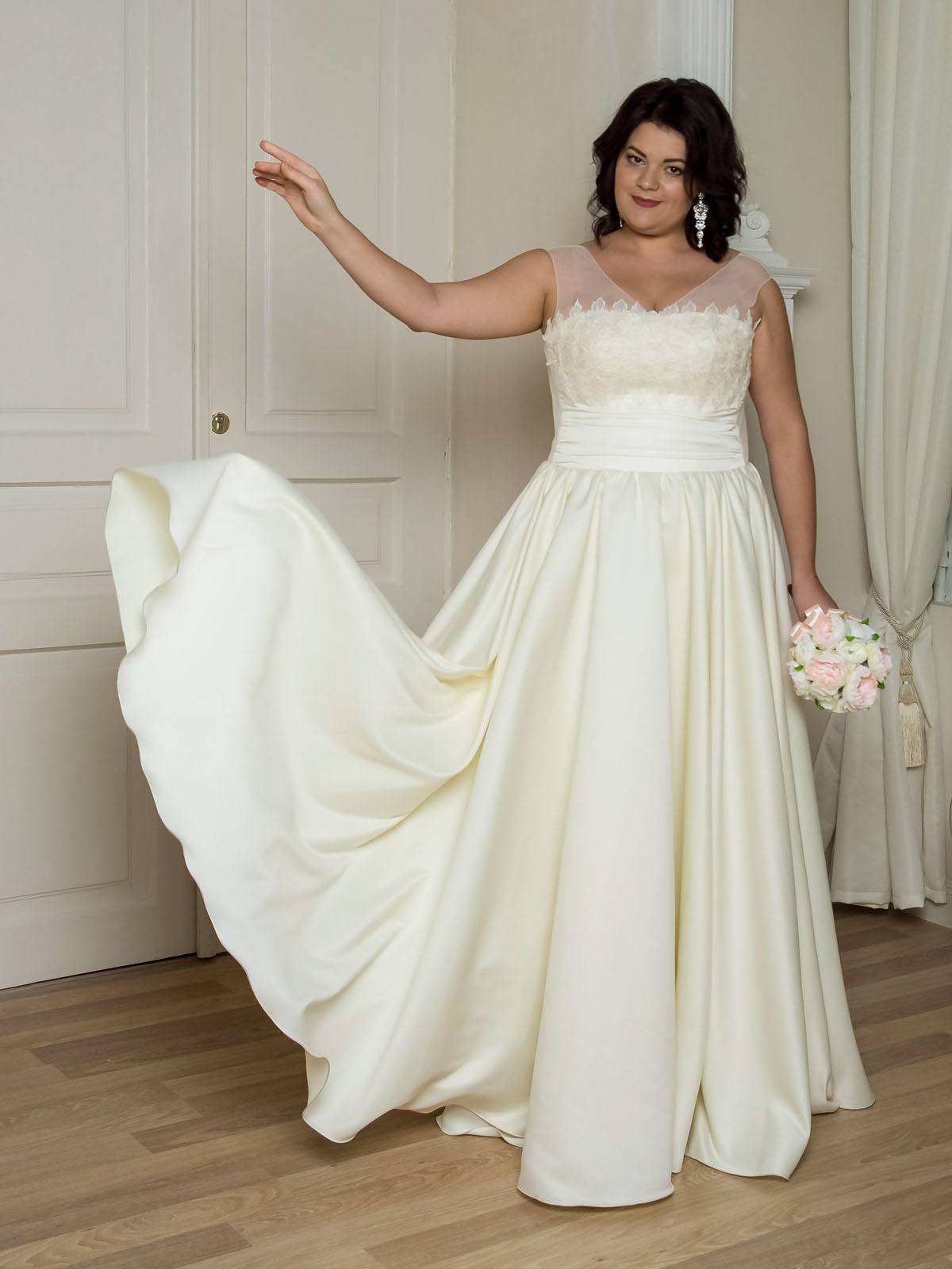 Les robes de mariée longues pour les mariées corpulentes sont cousues exactement dans les mêmes matières que les robes pour une silhouette standard. Très souvent, les créateurs utilisent comme tissu de base une mousseline aérienne, une soie fluide, un satin chic ou une guipure charmante. Le corset et le magnifique bas de la jupe affinent visuellement la mariée, et en raison de la longueur de la robe sur le sol, la silhouette est quelque peu étirée. À l'envie de la plupart des femmes minces, les demoiselles ont un buste sexy, qui ne doit en aucun cas être caché sous la draperie d'une robe de mariée. Une incision profonde dans la région de la poitrine maximisera sa taille. Le corset souligne remarquablement la beauté de la magnifique poitrine et le décor en dentelle, strass, applications florales et broderies attirera davantage l'attention des autres.