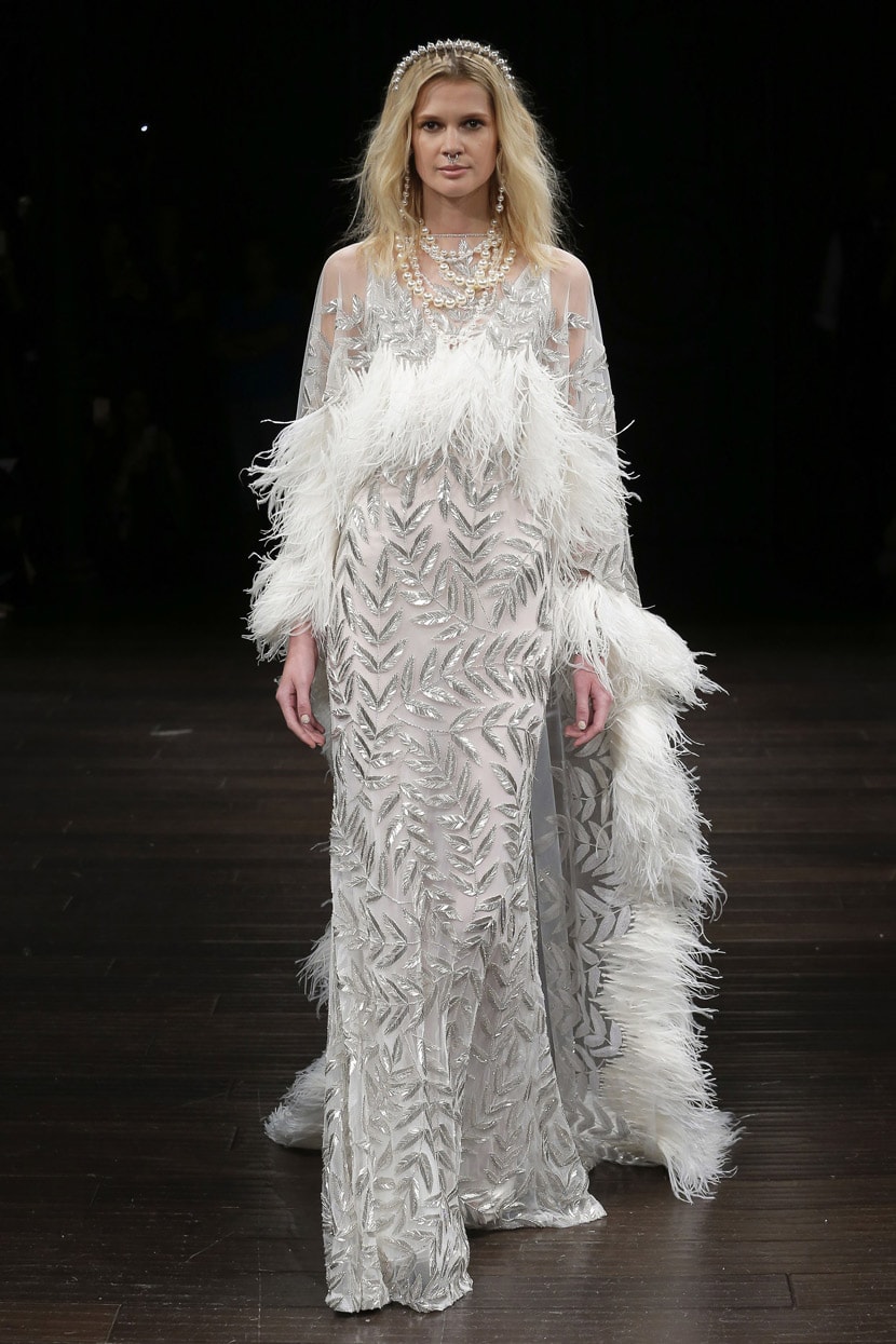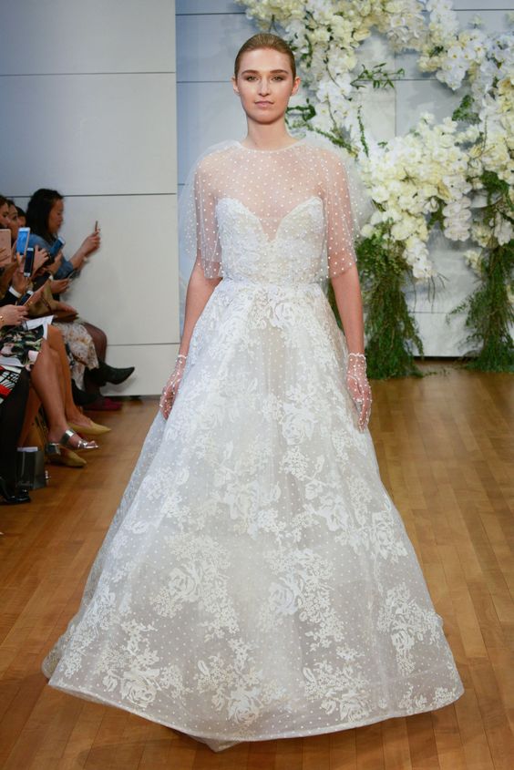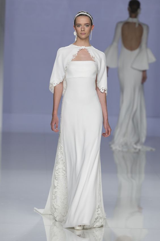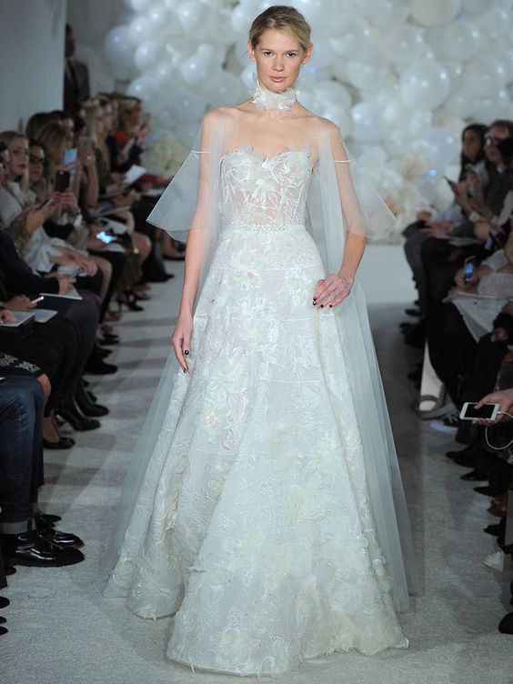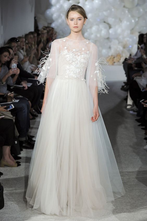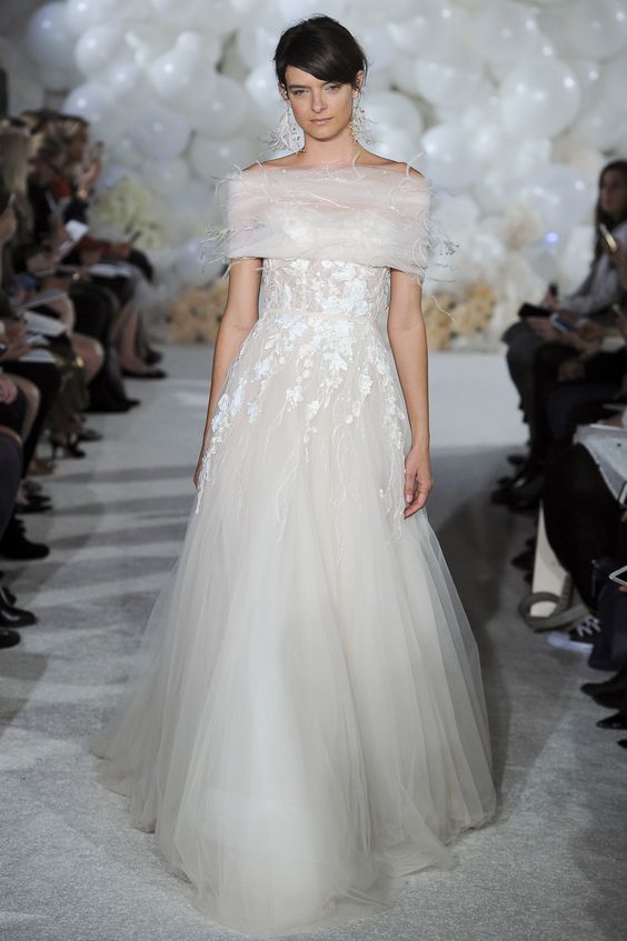Dans l'année à venir, les stylistes offrent une alternative plutôt intéressante à la sélection du voile. Au lieu de cela, il vaut la peine de regarder de plus près la cape en tissu translucide. Si vous le souhaitez, vous pouvez choisir non seulement des modèles restreints, mais également des options avec un décor de dentelle, de plumes, de rubans et de perles. Une telle solution complétera parfaitement une robe de mariée modeste et donnera à l'image une sophistication particulière.