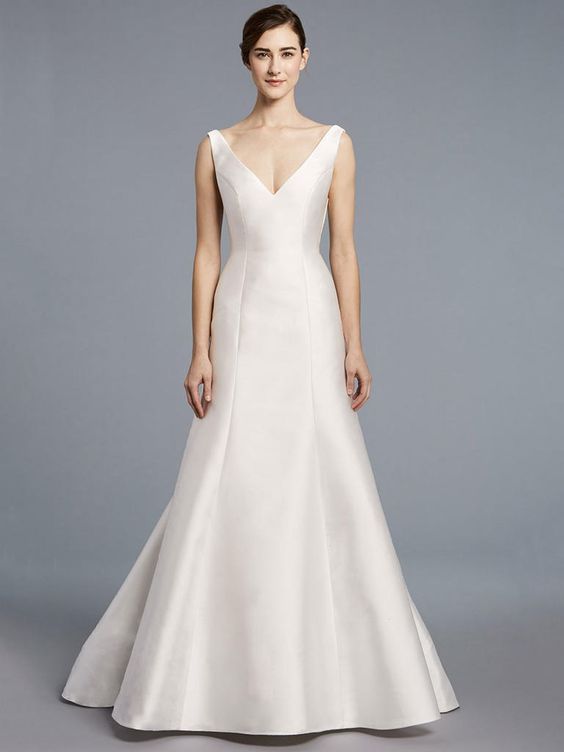 Malgré la pertinence de robes luxuriantes, luxueuses et audacieuses, les concepteurs n'oublient pas le minimalisme. De tels produits conviennent aux filles confiantes qui n'aiment pas les décors et les détails excessifs des vêtements. Une plus grande attention est accordée à la sélection de matériaux coûteux et de grande qualité. Grâce à l'ajustement parfait, cette robe de mariée a toujours l'air luxueuse.