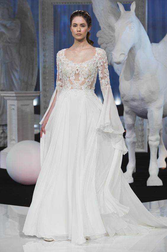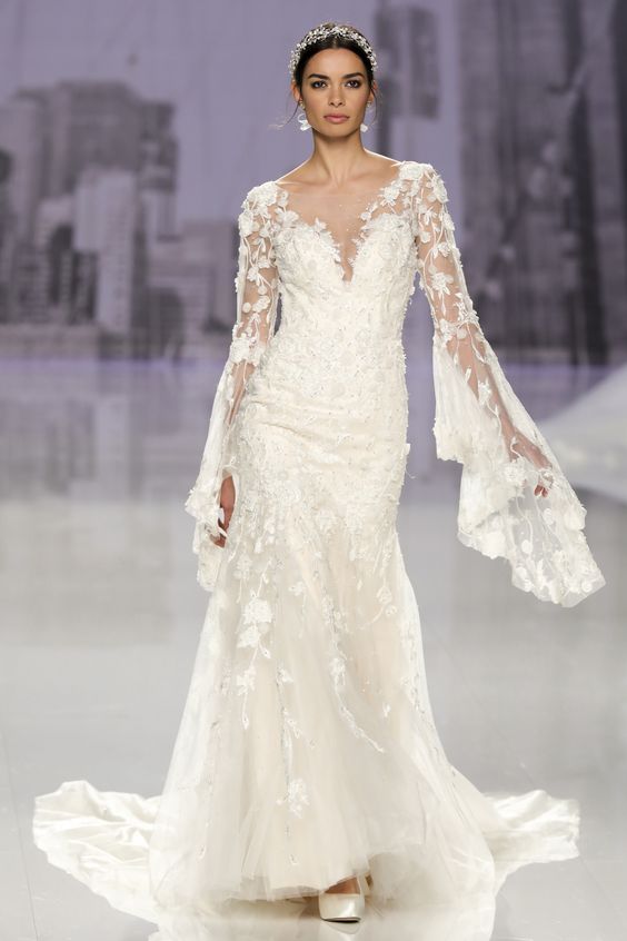 Auparavant, les robes ouvertes ou plus sobres à manches longues étaient très populaires. En 2026, d'autres options plus intéressantes seront pertinentes. Par exemple, les manches cloche ont toujours l’air doux, féminin et facile. Quant à leur longueur, les concepteurs ne limitent pas le choix.