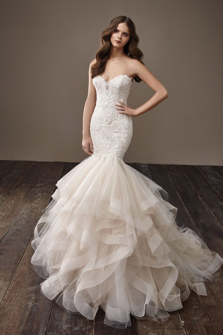 Vous pouvez créer un look ludique et élégant pour la mariée en utilisant les dernières robes de mariée de style sirène. De tels modèles de robe sont très populaires et en demande, parce que la silhouette de la mariée y est tout simplement magnifique. Il y a beaucoup de fans du style de la robe de mariée à la Petite Sirène, parce que la conception du produit rend la mariée vraiment luxueuse et unique. La queue particulière semble inhabituelle et intéressante. La mode nuptiale ne limite pas les concepteurs dans le choix des tissus lors de la couture de robes à la manière d'une sirène. Certains créateurs de mode soulignent une queue intéressante avec des volants et des volants multicouches, tandis que quelqu'un a choisi de créer un modèle moulé.
