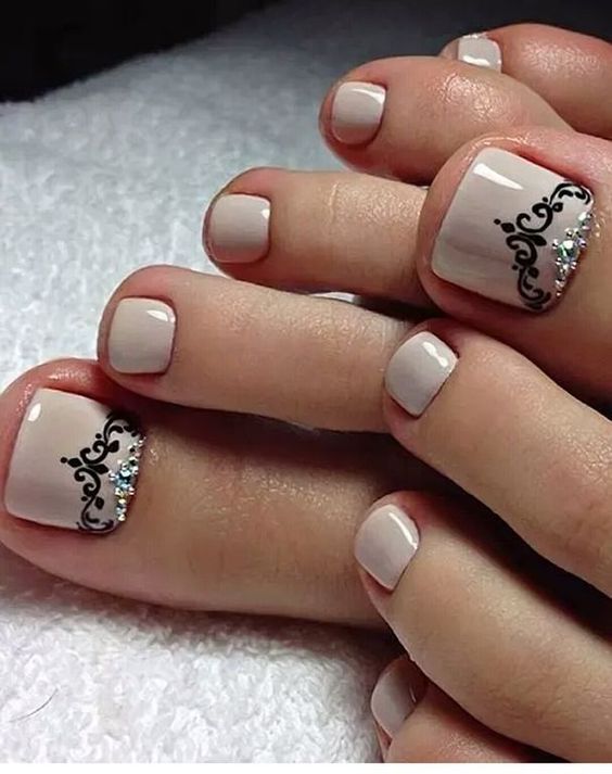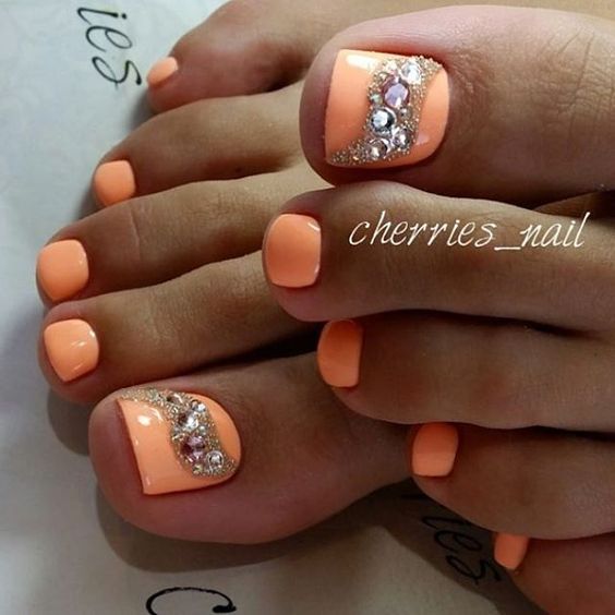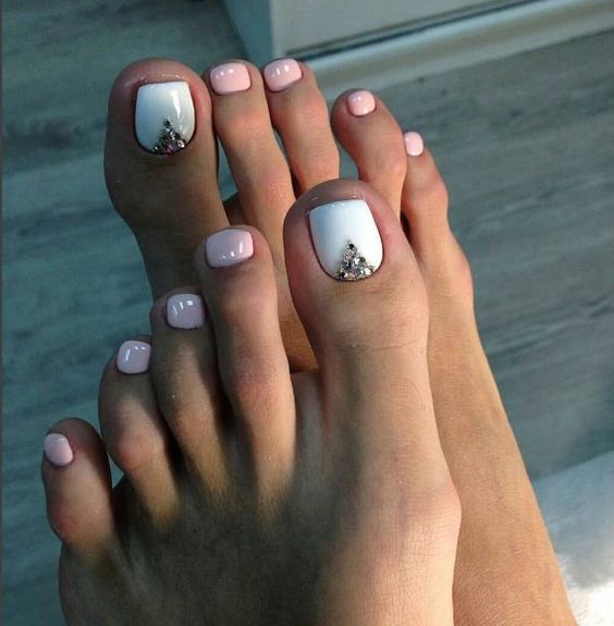 Bien sûr, une pédicure de mariage est différente de tous les jours, mais certains éléments de décoration sont présents partout. Ce sont des cristaux et des pierres de Swarovski. Ce sont ces décorations qui rendent la pédicure de mariage plus solennelle. Beaucoup de filles qui se marient préfèrent utiliser un vernis discret sur les ongles de leurs jambes. Et certains essaient même de briller dans une pédicure de mariage. Les strass fournissent une telle opportunité merveilleuse. La taille du strass ne doit pas être grande, car elle va interférer. Et le nombre de pierres doit aussi être limité pour ne pas paraître vulgaire.