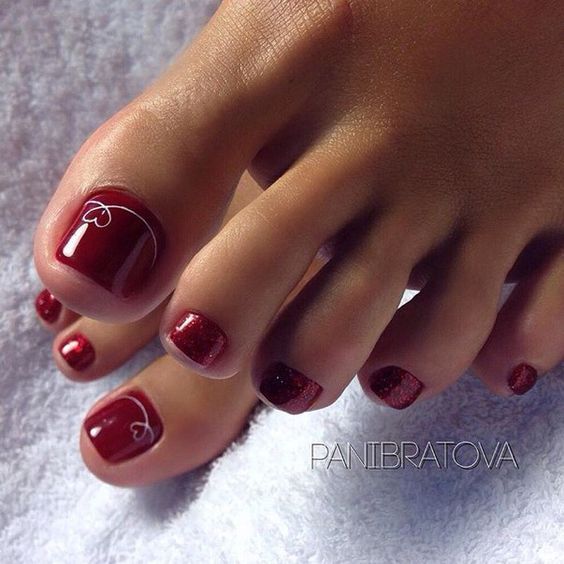 Faire des clous sur les jambes de la mariée est une question de responsabilité et nécessite une certaine approche lors du choix du motif. Comme vous le savez, récemment, les mariages utilisant certaines couleurs ont été populaires. Chez eux, même les invités sont invités dans des vêtements d'une certaine nuance. Dans de tels cas, il est conseillé de considérer les options pour une pédicure de mariage dans ces couleurs. Bien sûr, les teintes sombres du vernis sont une rareté, mais elles se retrouvent tout de même et ne semblent pas si mauvaises dans une pédicure de mariage.