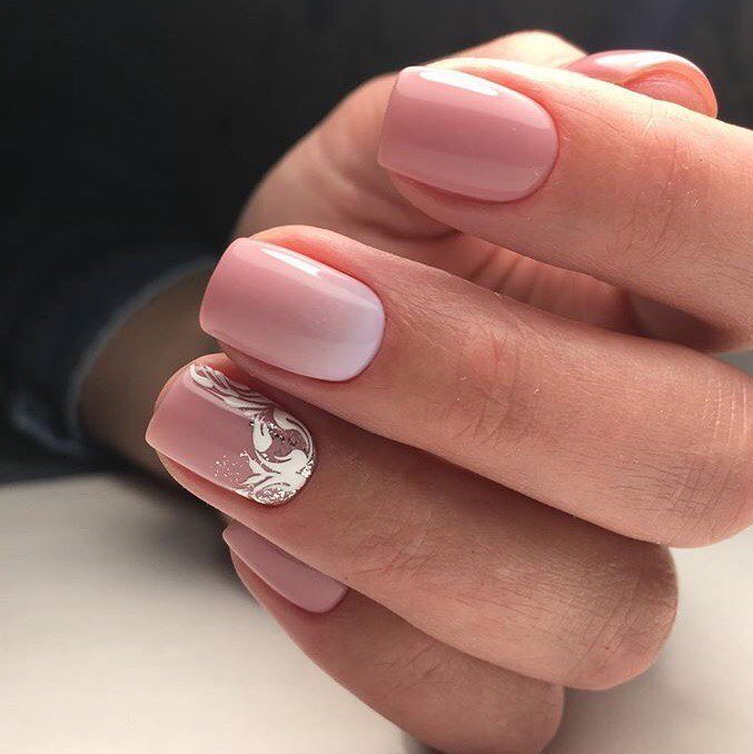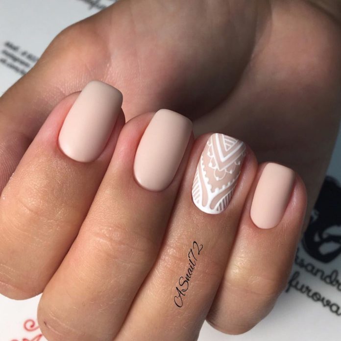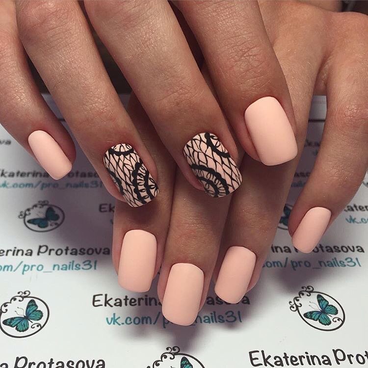 Vous pouvez ajouter un effet «velouté» visuel à l'aide de poudre et de sable. Ce type de décoration n'en est pas moins adapté aux manucures légères et le rend vraiment charmant. Faites des accents ou décorez tous les ongles, c'est votre choix, les deux options seront superbes en combinaison avec ce type de manucure. Une option de décoration éprouvée est constituée de dessins composés de lignes lisses et fines. Pour cette méthode, des boucles abstraites, des motifs floraux, de la dentelle, etc. conviennent.