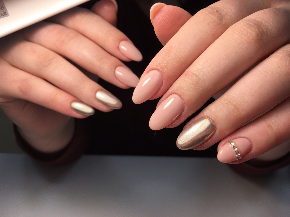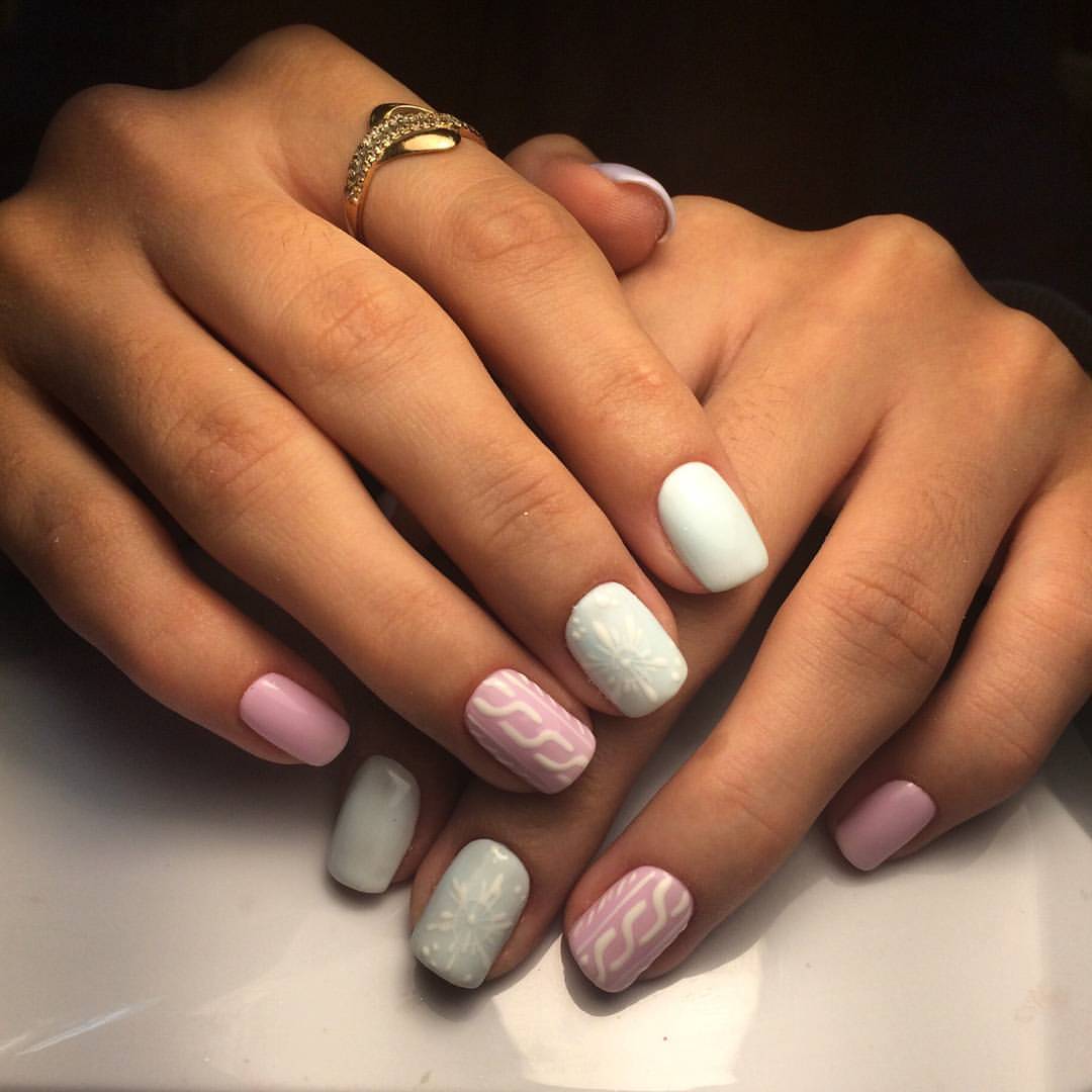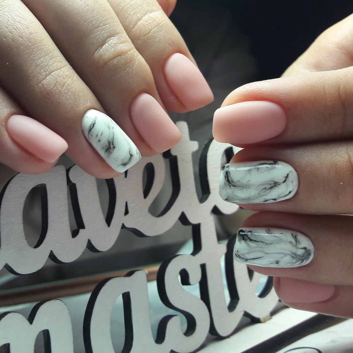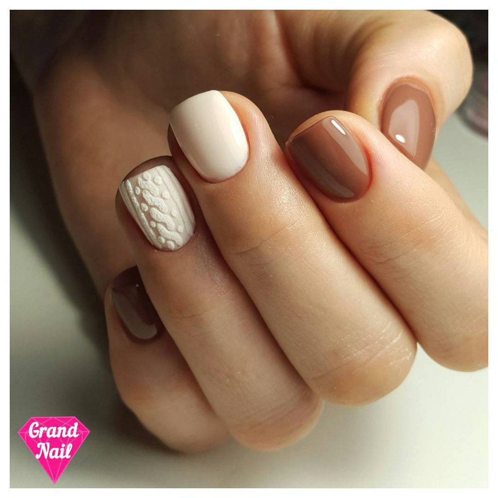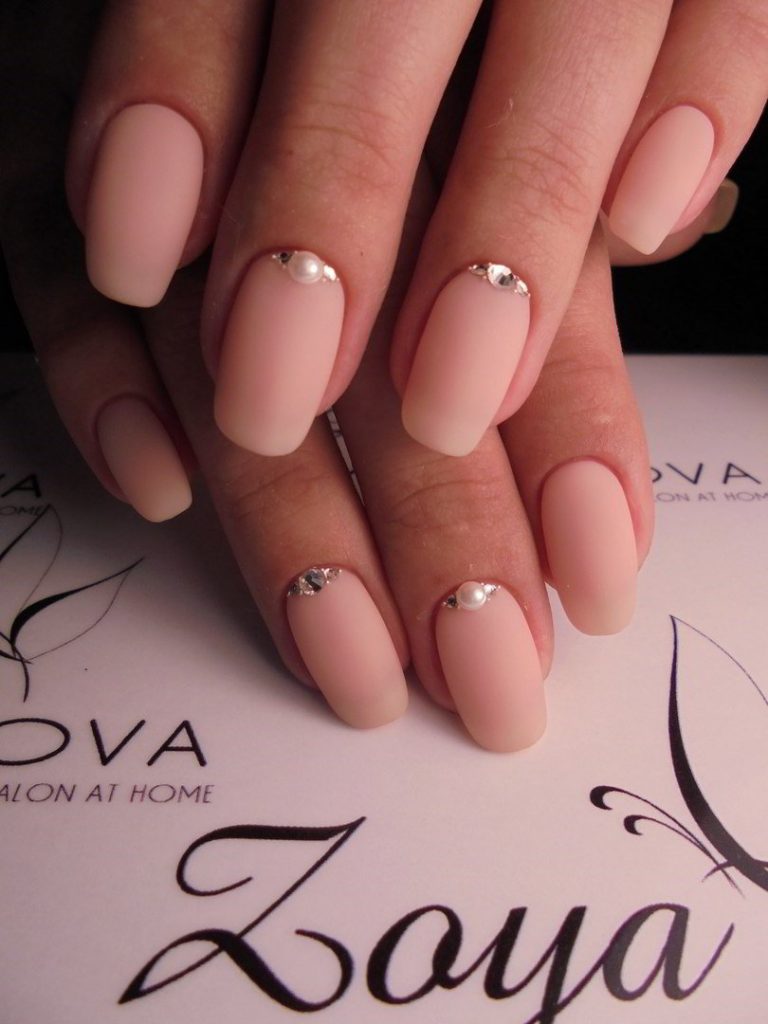 Les tendances modernes disent qu’il est possible et nécessaire de mélanger des textures. L’option la plus en vogue est l’enduit incomplet de l’ongle avec un vernis mat, et remplit l’espace restant de lustre classique, d’étincelles ou de frottement.