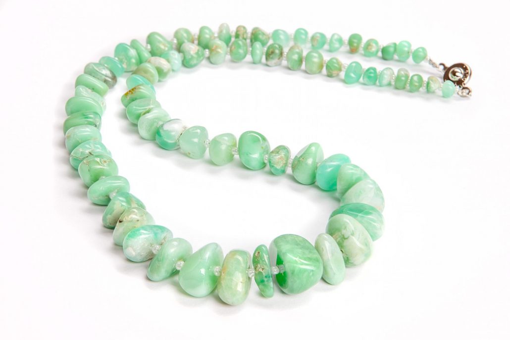 Chrysoprase est une amulette très puissante, convenant à la fois aux femmes et aux hommes. Vous devriez choisir des bijoux avec de la chrysoprase, qui ont une forme ronde. Cela comprend les bracelets et les perles. Les propriétés protectrices du minéral sont renforcées par la forme, et ces amulettes sont considérées comme les plus puissantes.