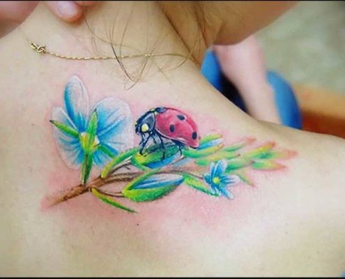 Tatouage de coccinelle: signification, croquis, beaux exemples sur la photo