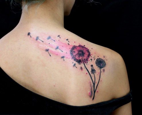 Tatouage de pissenlit: beaux exemples sur la photo, signification, croquis, arrangement
