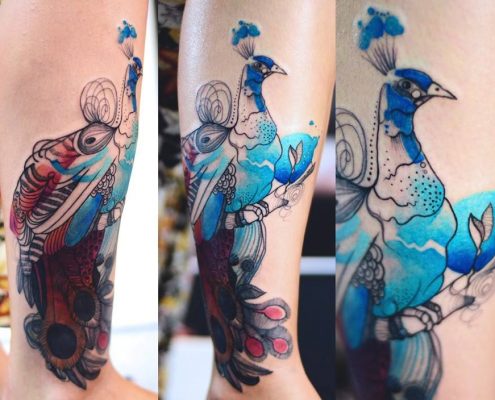 Peacock Tattoo: de belles photos, de nombreux croquis, des significations et des lieux d'application populaires