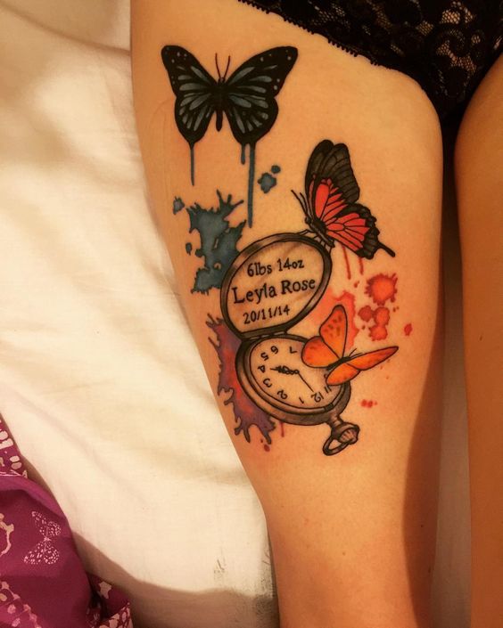 Un tatouage de papillon semble très bien sur la jambe. Réalisées en couleur, les images portables rendent l’image unique et unique. Une femme avec une composition complète sur la jambe, le motif principal dans lequel se trouve le papillon, présente un intérêt particulier pour les membres du sexe opposé. Les tatouages de papillons illustrés sur la photo sont inégalés et inspirants.