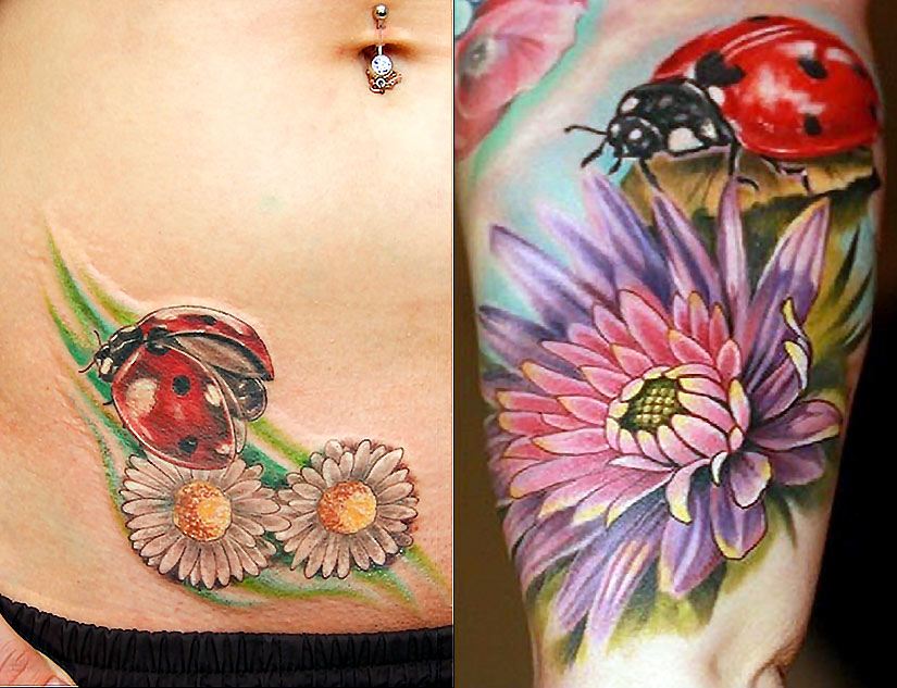 Les filles audacieuses et extravagantes choisissent le plus souvent un tatouage avec un insecte. Ils croient que la coccinelle est un symbole de romance et de sexualité. Mais un tel dessin conviendra également à des femmes parfaitement calmes et jolies qui comprennent toute la beauté, la grâce et le luxe de cette créature. Le type de tatouage dépend également de l'habileté de l'artiste tatoueur, du désir du futur propriétaire et de son placement sur le corps. Un tatouage de coccinelle peut être représenté comme étant assis sur une fleur ou volant seul.