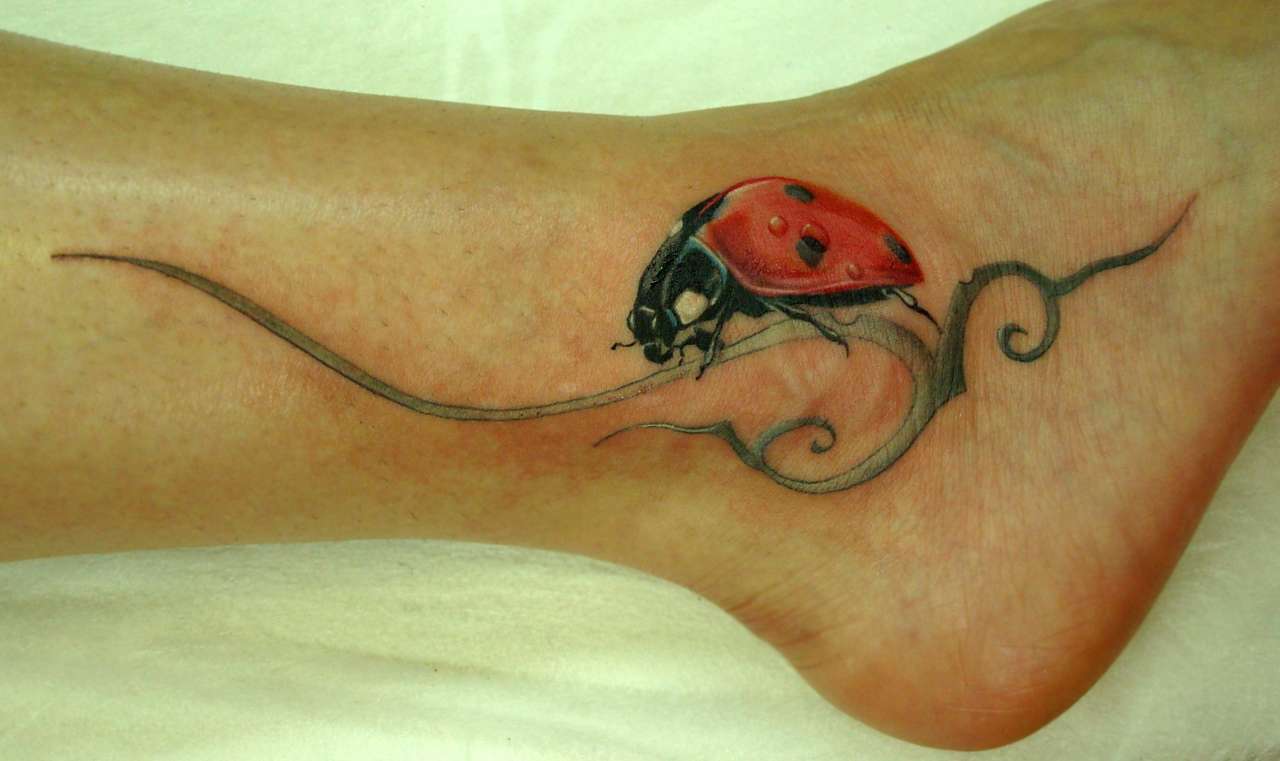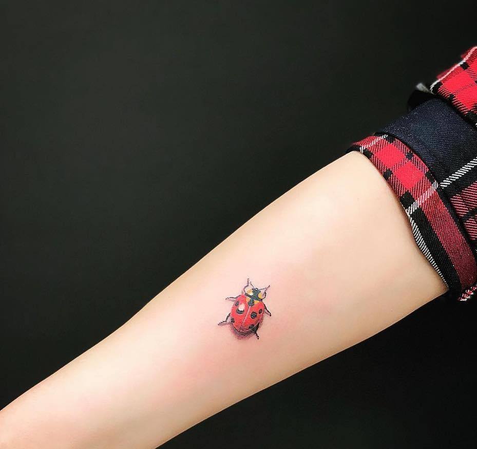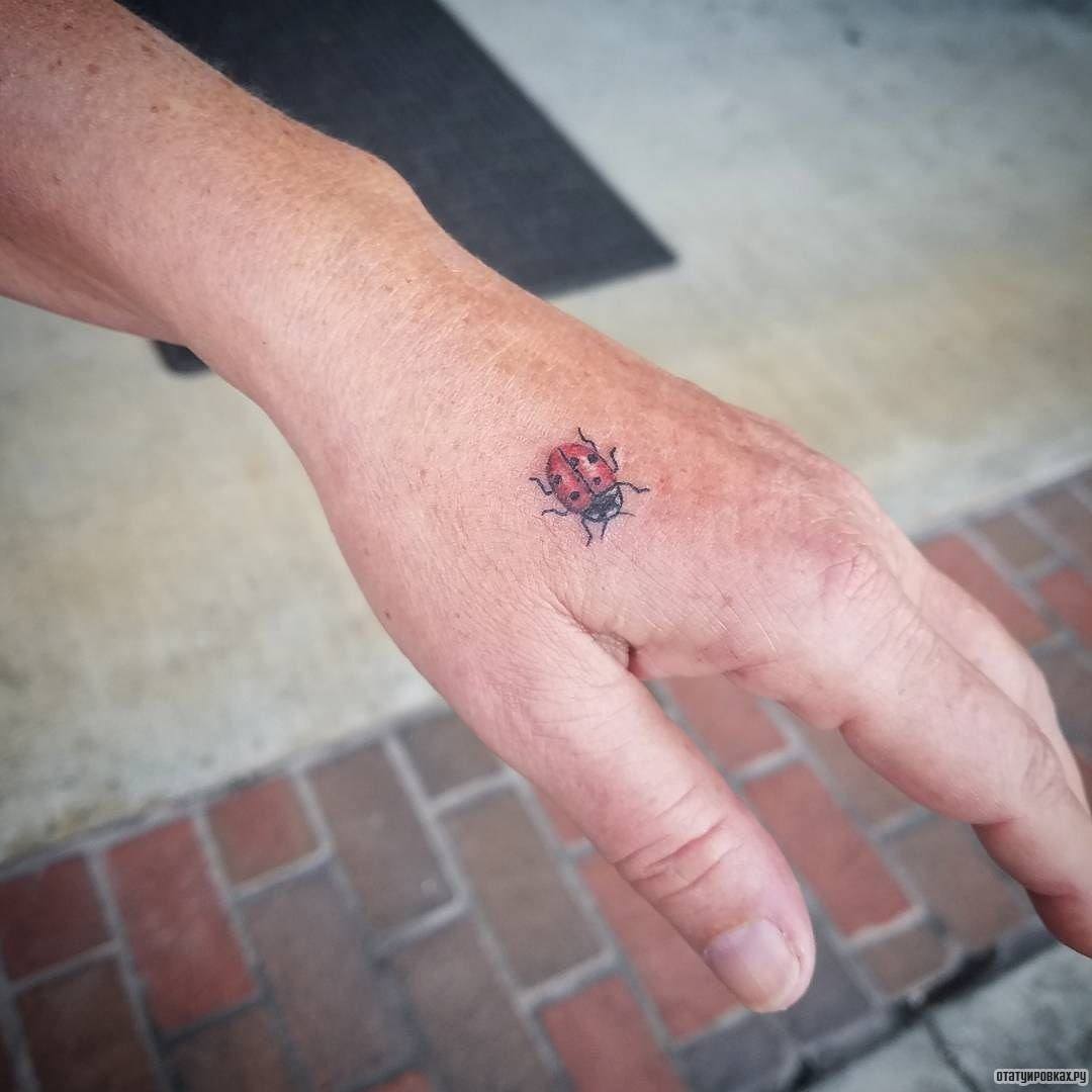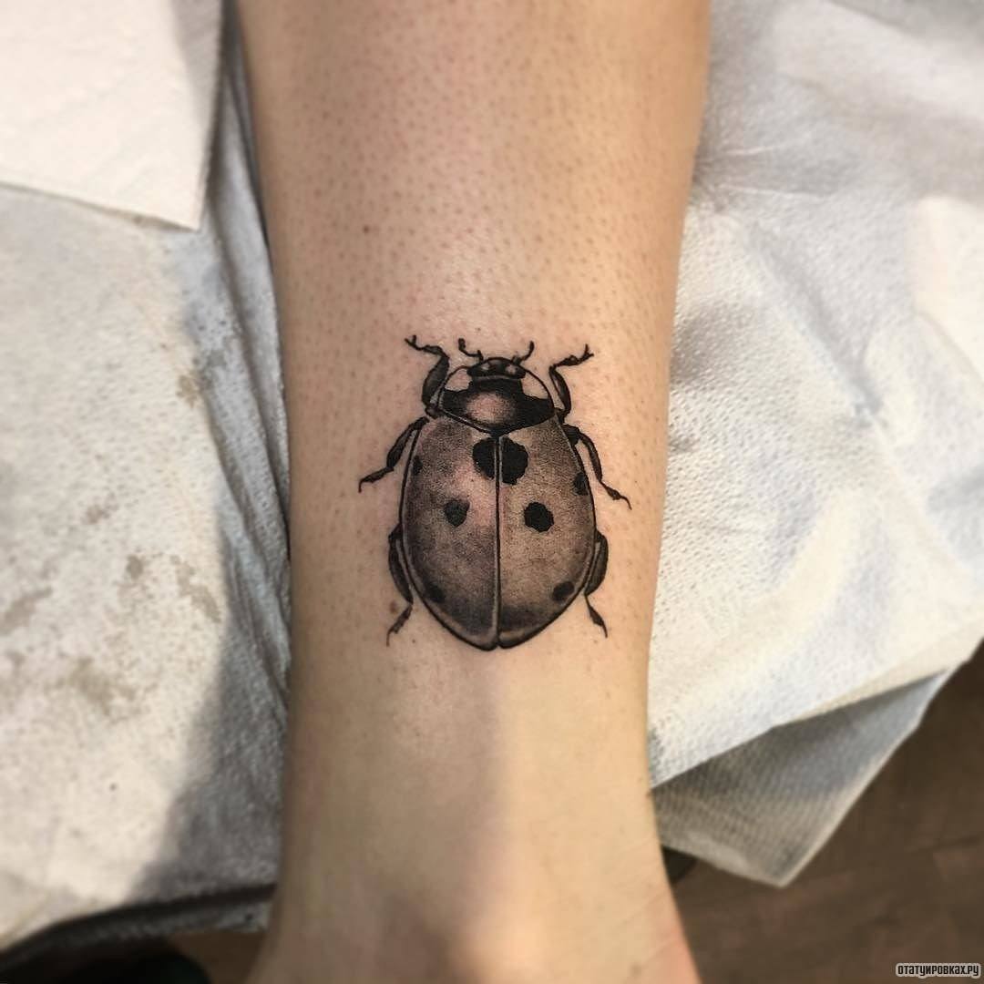 Tatouage de coccinelle: signification, croquis, beaux exemples sur la photo