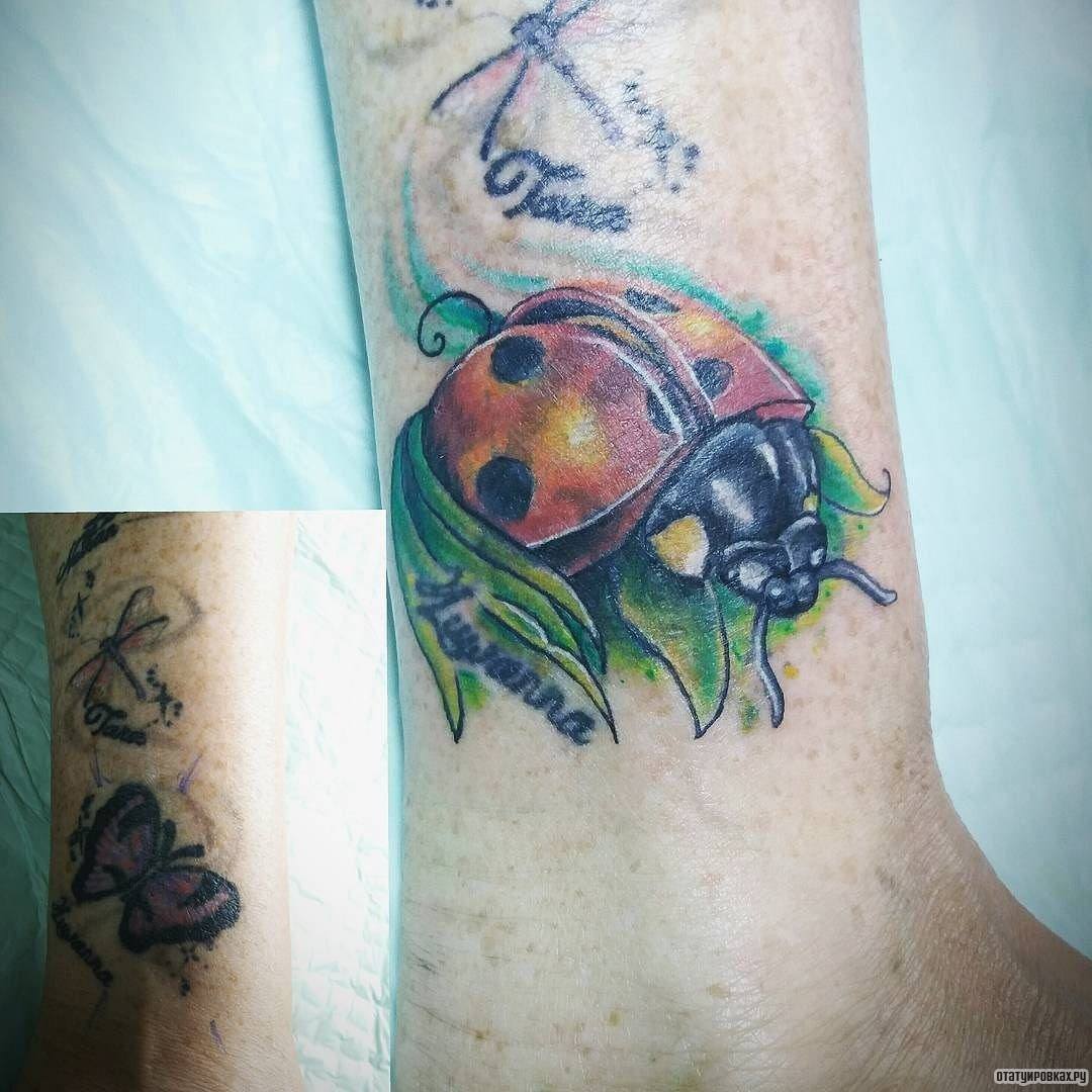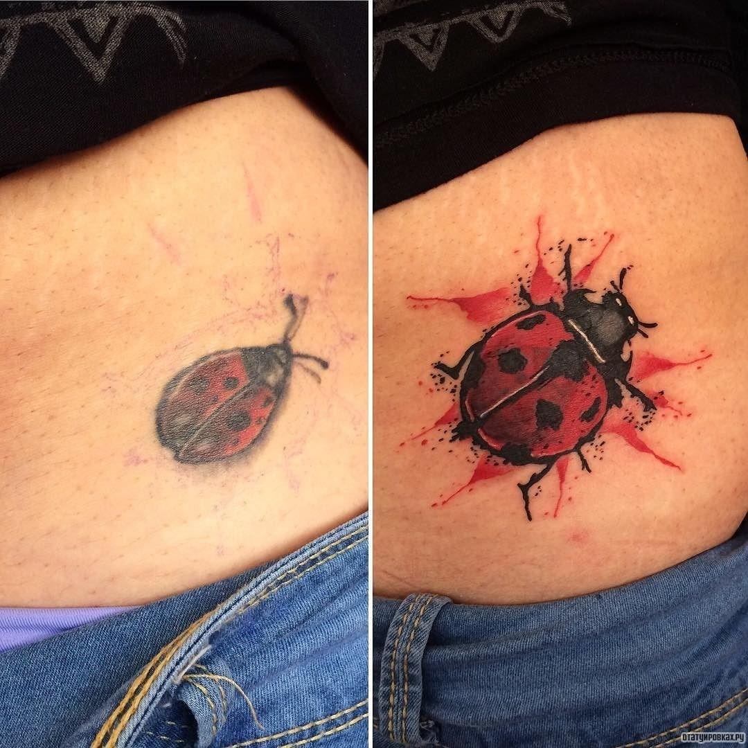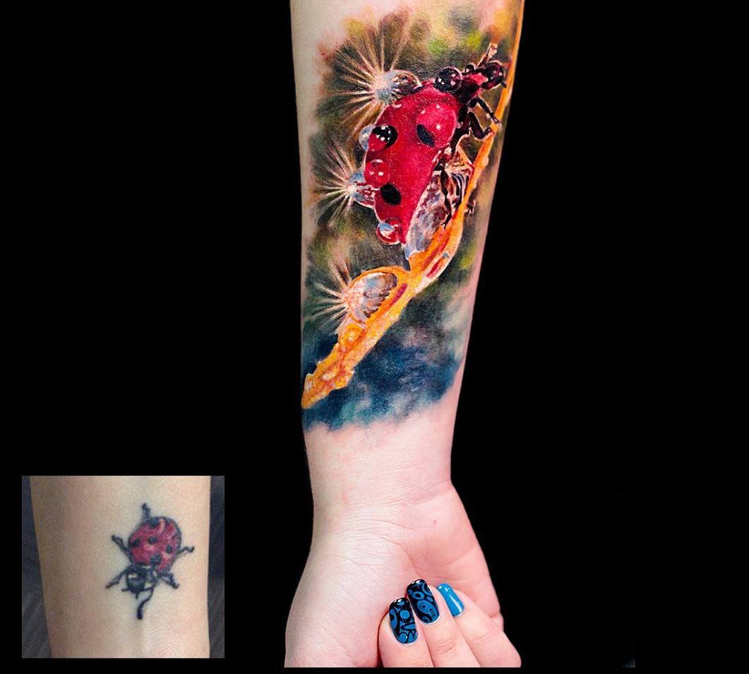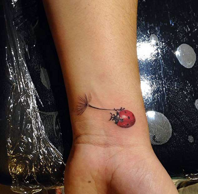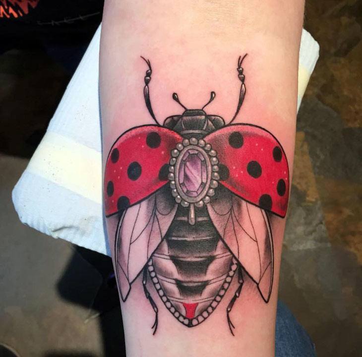Tatouage de coccinelle: signification, croquis, beaux exemples sur la photo