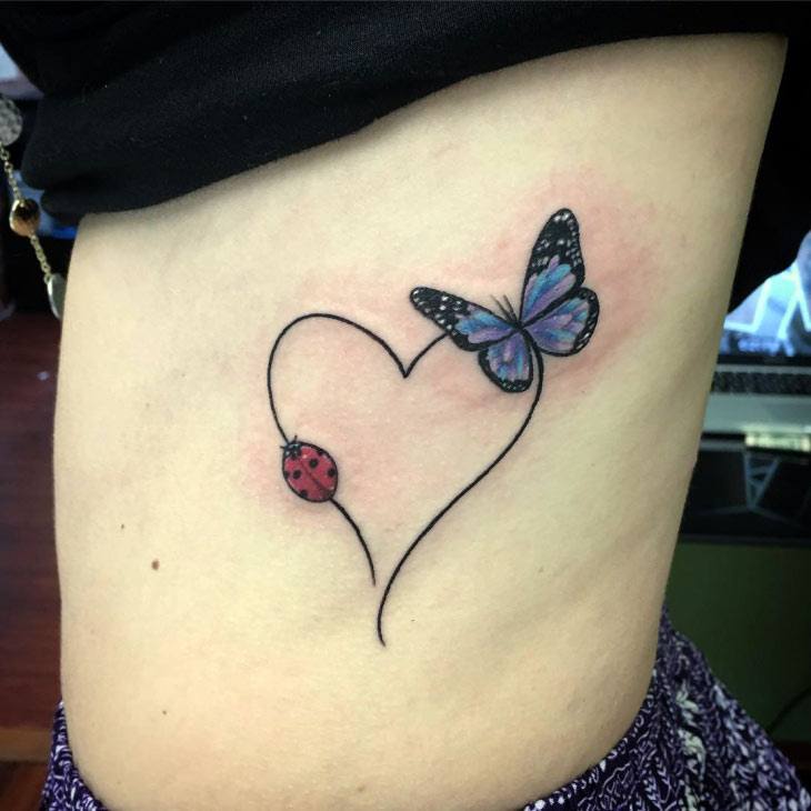 - Sous la poitrine. Cette option est plus adaptée aux filles, car elles représentent le plus souvent deux coccinelles opposées.