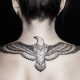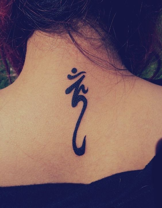 Les tatouages effectués sur des parties du corps telles que l'abdomen, la cuisse ou le dos sont réalisés dans des compositions plus grandes. Le vol d'imagination du maître peut être illimité. Pour un tel tatouage de lettres, des images de flamme, d'eau, une rafale de vent dans le feuillage ou même une image d'animaux conviennent.