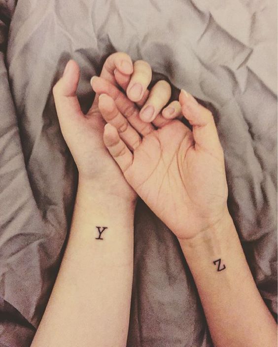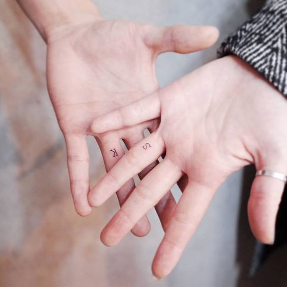 Très souvent, les couples se font tatouer les doigts. Chacun d'entre eux met la première lettre du nom de sa seconde moitié. Mais d'autres variantes de lettres qui ont leur propre interprétation peuvent également être décrites. Par exemple, la lettre "L" symbolise l’axe de la Terre, c’est-à-dire le fondement de tout le principe de la vie et l’essence de l’être. En outre, “L” a une signification cachée de pouvoir sans frontières.