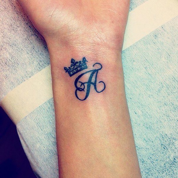 Très souvent, les lettres de tatouage emblématiques sont décorées avec diverses options pour les couronnes. Cette décision donne à la lettre une signification spéciale et royale.Les hommes choisissent le plus souvent des lettres en gras avec des angles vifs. De telles lettres couronnées, faites avec une légère pente, donnent des notes courageuses et impressionnantes à l'image masculine. Mais les filles préfèrent les images minces et rondes de lettres avec une couronne. Ainsi, le beau sexe souligne leur grâce et la sophistication de la nature.
