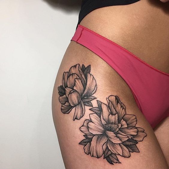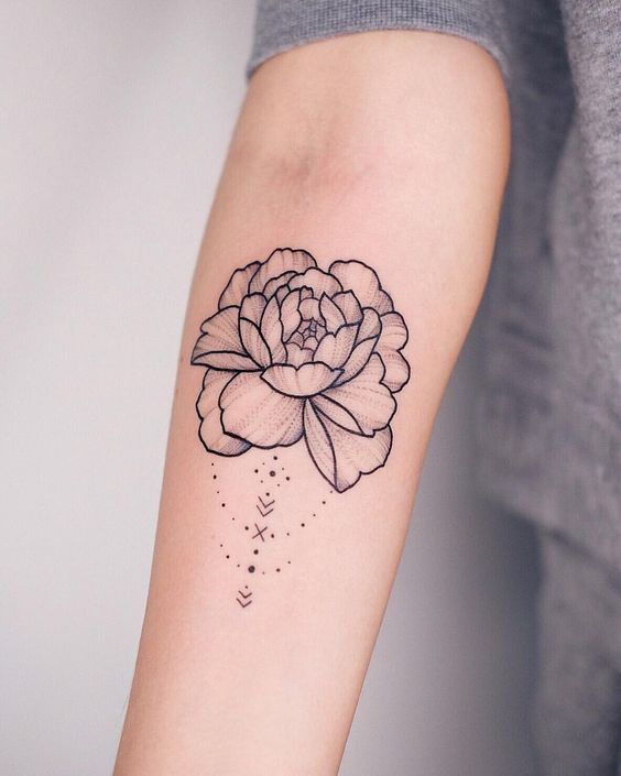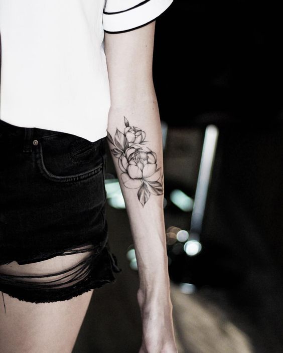 Dans la culture orientale, un tel tatouage est le plus souvent choisi par les hommes, car une pivoine symbolise le début masculin. Mais en plus, ce dessin signifie amour, chance, richesse et harmonie intérieure. Par conséquent, les filles choisissent cette option non moins souvent. Après tout, cette image met en valeur la beauté et a en même temps une signification profonde. Mais contrairement aux autres tatouages de fleurs, les pivoines sont souvent réalisées en noir et blanc.