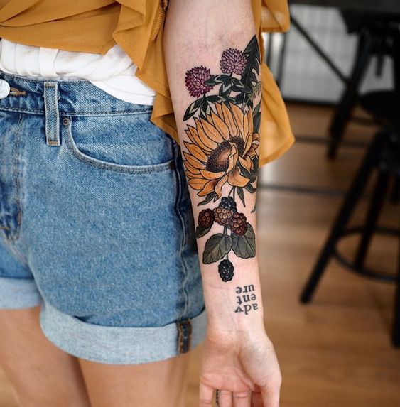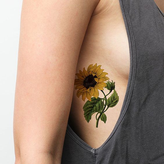 Le tournesol incroyablement lumineux et magnifique n’est pas souvent choisi comme motif de tatouage. Néanmoins, il a l'air vraiment cool et est toujours associé à la chaleur et au soleil. La fleur elle-même est un symbole d'amour, de sentiments forts, de fidélité et de bonheur véritable. Par conséquent, nous recommandons à ceux qui partagent ce même sens d’examiner de plus près cette option.