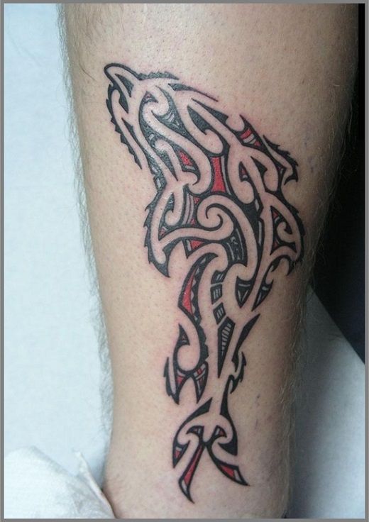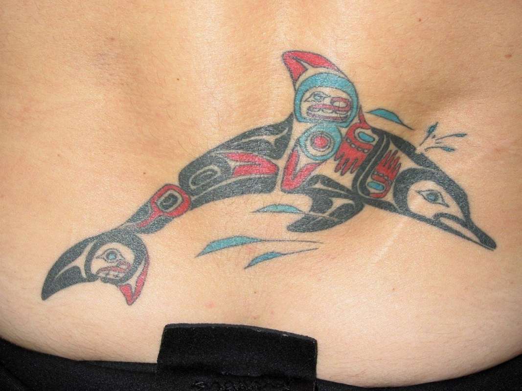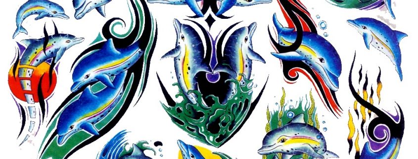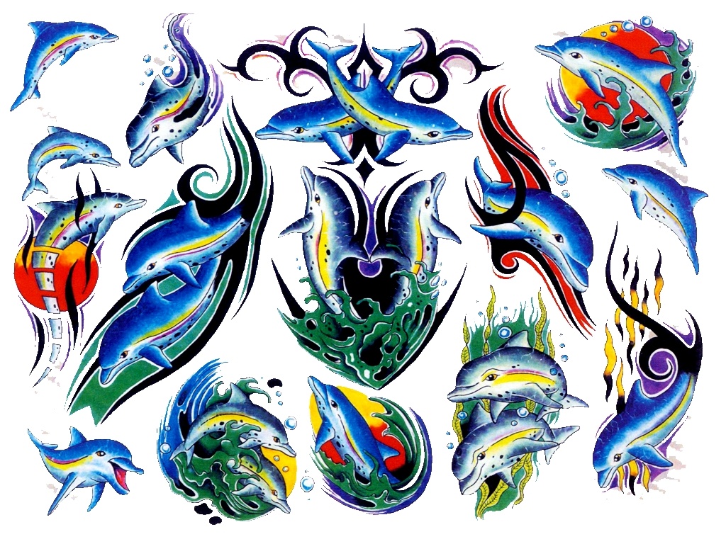 Les tatouages de ce style ne sont pas simplement des images, mais de véritables chefs-d'œuvre. Le plus souvent, les dauphins sont représentés en couleurs noire et grise. Sur le fond du dessin, son habitat, la lune ou le soleil, est réalisé.