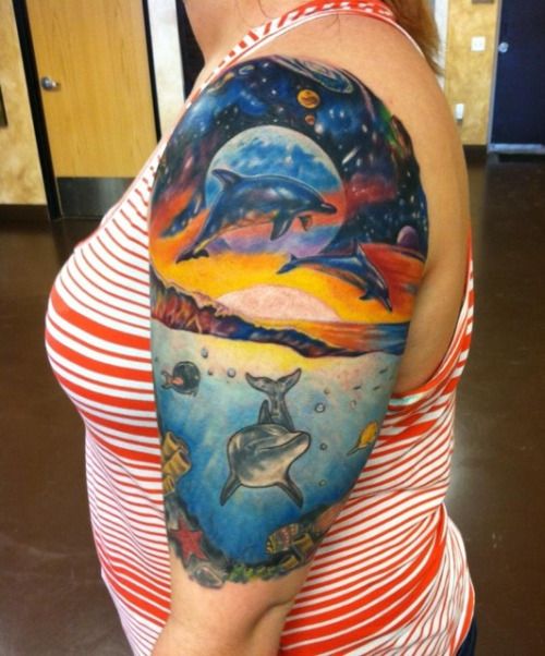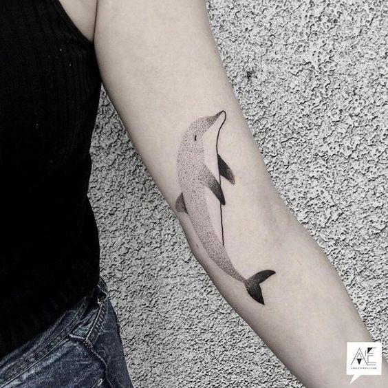 Dans le monde moderne, les filles préfèrent davantage ce type de tatouage que les hommes. Bien que les dauphins soient des créatures très courageuses et aient sauvé des gens plus d'une fois, c'est pourquoi auparavant, seuls les marins se sont infligés l'image d'un poisson fort et courageux. En règle générale, les tatouages de dauphins sont utilisés par les filles actives, gaies et énergiques, toujours prêtes à aider un ami et qui aiment leur vie. Ils ont une énergie puissante. Ils valorisent et valorisent la liberté personnelle. Ne jamais permettre la violence personnelle.