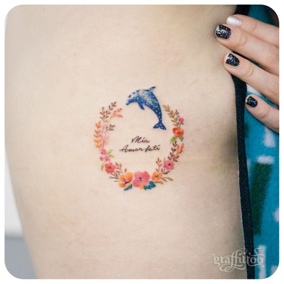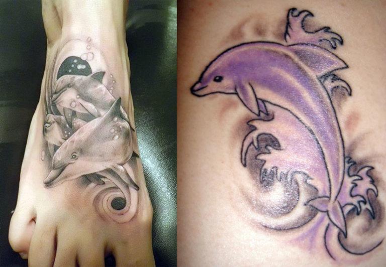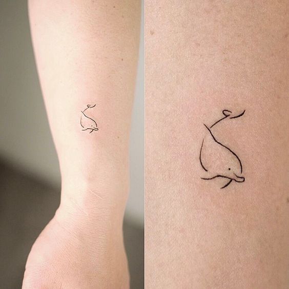 Les filles vulnérables, crédules et au tempérament doux utilisent souvent un tatouage miniature de dauphin. Puisque ce poisson de mer a un intellect élevé, il est donc un signe de créativité pour un esprit et un métier, même s’il s’agit d’une micro-exécution.
