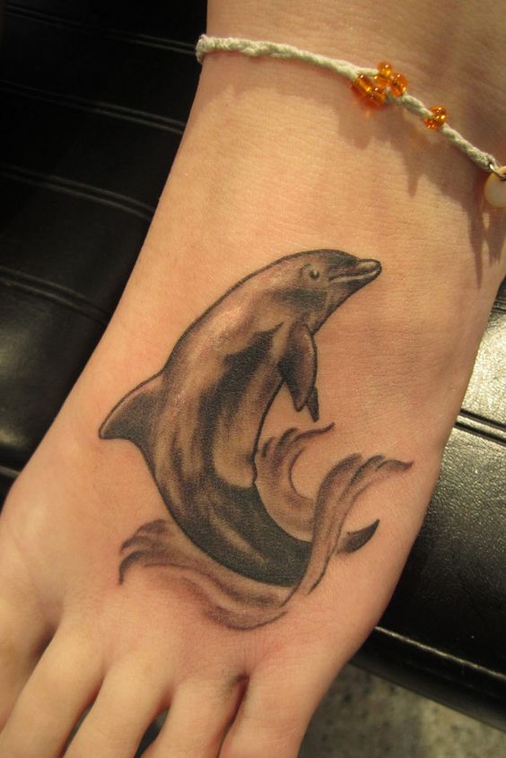 Les dauphins dans le style du réalisme, avec des ornements ou des motifs éthiques, auront l'air très bien. Vos préférences et vos goûts jouent ici un rôle important. Les domaines d'application les plus populaires sont l'épaule, la cheville, le poignet, le ventre ou la poitrine. Pour compléter la photo, vous pouvez utiliser le magnifique paysage de la mer au coucher du soleil ou à l’aube, ou même représenter un dauphin sous forme d’abstraction. Cette dernière option est généralement réalisée dans un motif populaire.