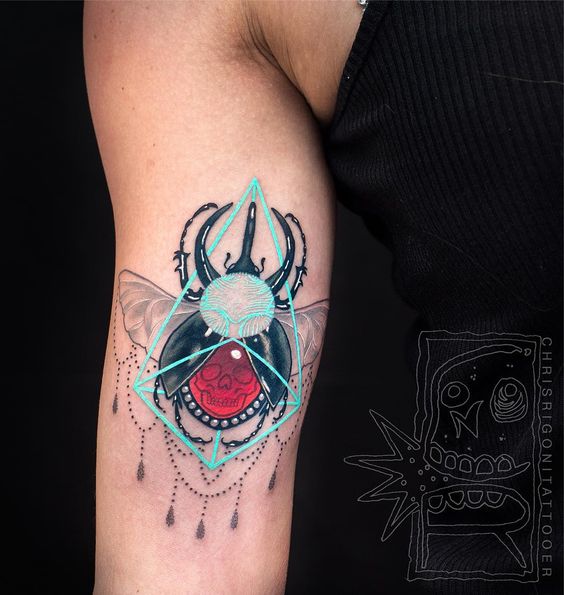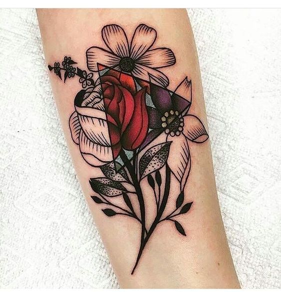 En 2026, non seulement les tatouages géométriques noirs sont en demande, mais également ceux de couleur. Ils ont l'air plus attrayant. À l’envie de beaucoup de rivales, une fille qui s’est fait un tatouage coloré avec des lignes géométriques attirera les regards de nombreux hommes. Beaucoup d'hommes critiquent le désir des filles de se faire tatouer géométrique, parce qu'elles le considèrent spécifique et inapproprié. Mais les tatoueurs professionnels doivent faire face à la féminité et à la sexualité irrésistible des tatouages géométriques.