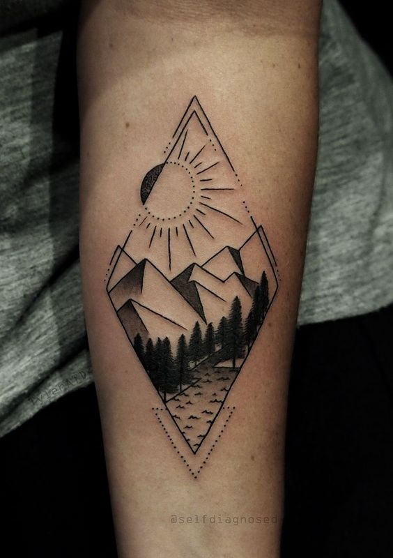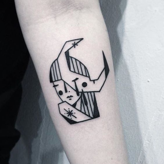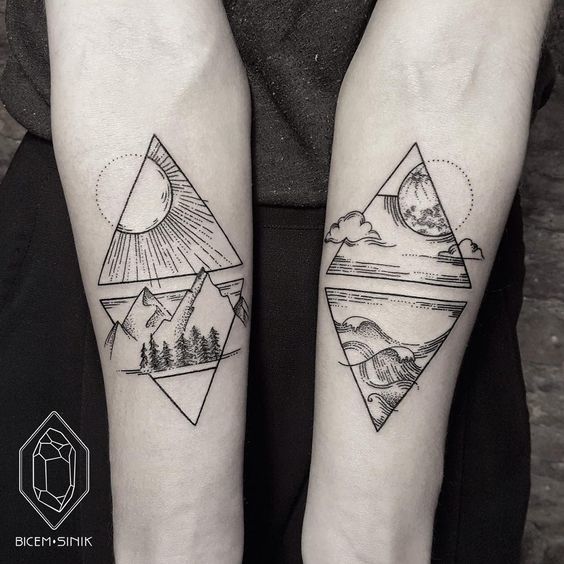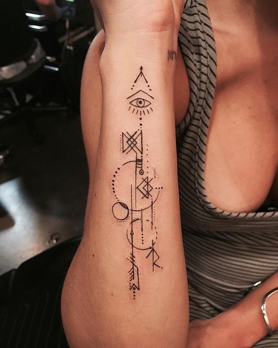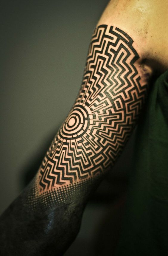 Nous avons vu des dessins géométriques sous la forme de peintures rupestres. De nombreuses figures géométriques ont une signification secrète, en fait, comme toutes les autres lignes. La valeur de nombreux tatouages géométriques est interprétée comme un équilibre, une détermination. De nombreuses lignes sur le corps se croisent, créant des compositions exceptionnellement belles. La signification de la géométrie du tatouage est interprétée en fonction de l'image avec laquelle les lignes sont combinées. Surtout dans la pratique, les tatouages sont réalisés dans un espace à deux dimensions. Très souvent, sous de telles formes, la composition principale se trouve, pour ainsi dire, dans le cadre de la figure géométrique et toute l'action se déroule à l'intérieur.