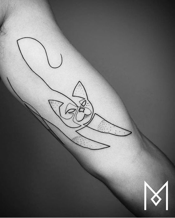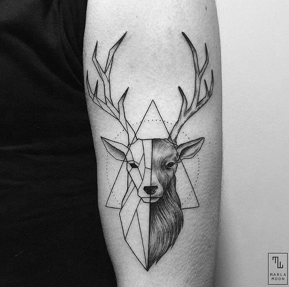 Sur les pages publiques des réseaux sociaux populaires, il existe de nombreux groupes dans lesquels les filles vantent de superbes images d'animaux dans un style géométrique. De telles options s'apparentent davantage à une technique minimaliste. Puisque, à part les lignes, il n'y a rien d'inhabituel en elles. Néanmoins, cela ne les rend pas mauvais. Des créatures forestières inhabituelles ornent le corps de la femme en utilisant la technique de la géométrie. La composante sémantique de ces tatouages uniques se révèle dans le choix d'un animal fait de lignes géométriques.