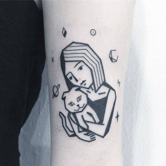 Pour les tatouages géométriques, les filles essaient de choisir des croquis moins agressifs. Très souvent, les tatouages géométriques sont positifs. Les filles préfèrent les dessins avec des phénomènes naturels, les intersections géométriques et les images qui leur sont directement liées, par exemple une fille avec un chat ou une mère avec un enfant.