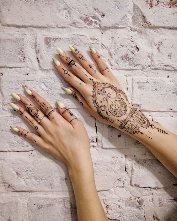 En fait, il existe un nombre illimité de dessins pouvant être transférés sur le corps sous forme de tatouage au henné. Nous avons préparé une vaste sélection d’idées d’inspiration, parmi lesquelles vous aimerez certainement quelque chose.