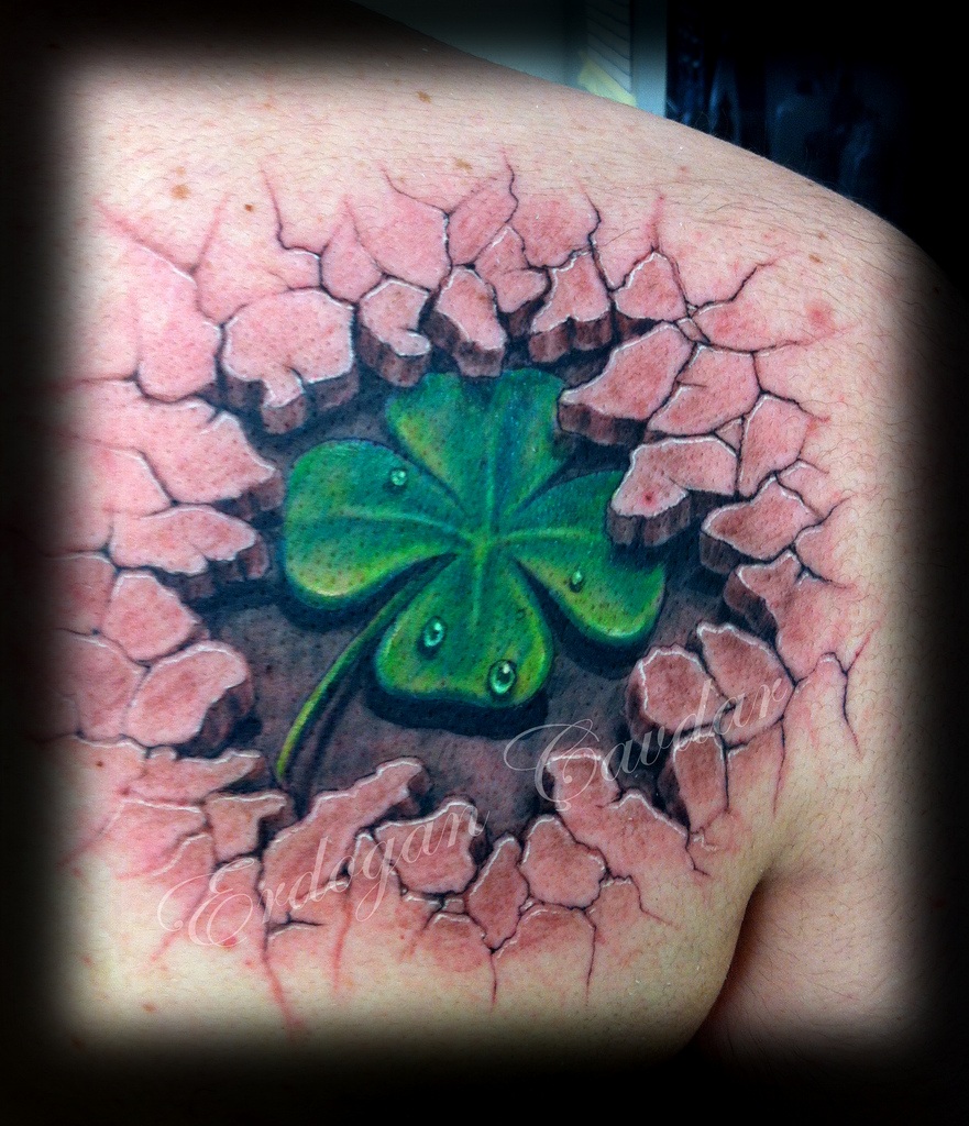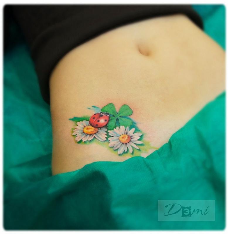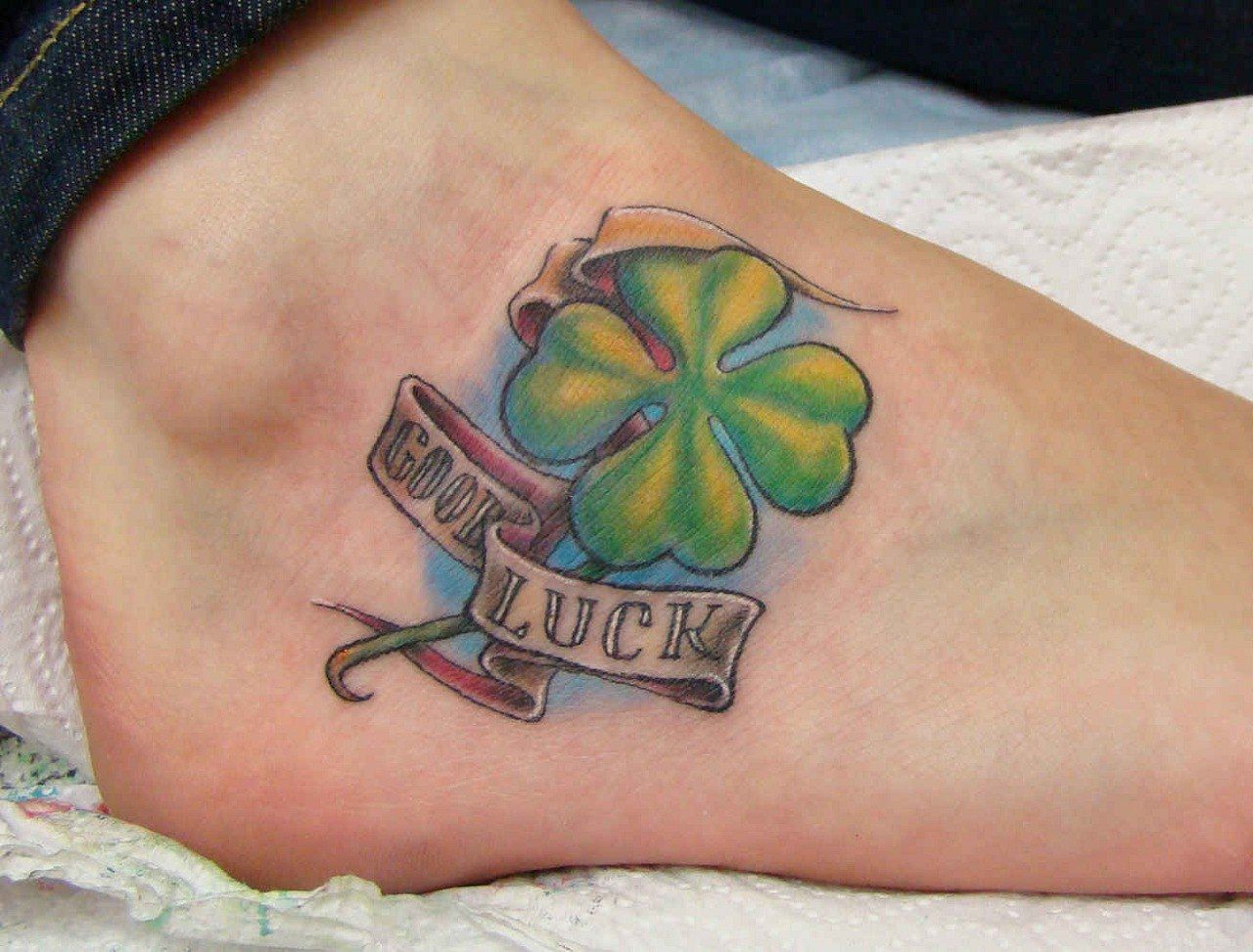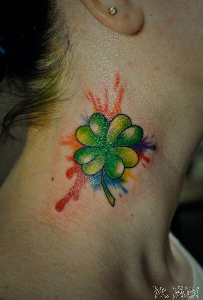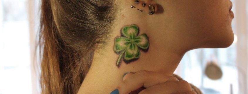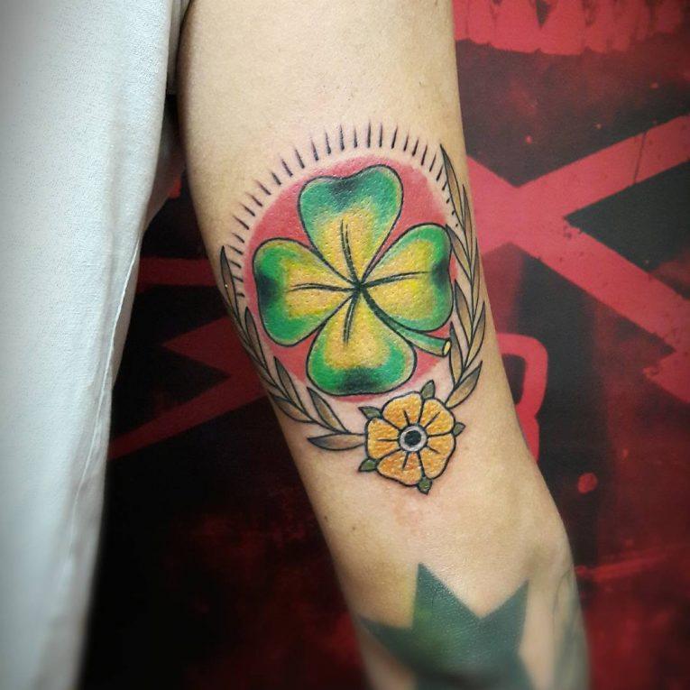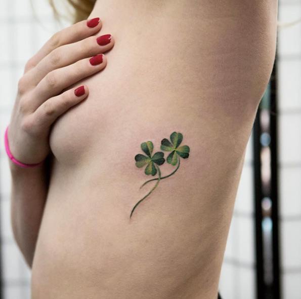 Tatouage Clover - symbole de réussite sur le corps des filles