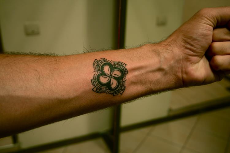 La combinaison du trèfle et du signe de l'infini semble très simple, mais porte un sens philosophique profond. Comme vous le savez, un trèfle traditionnel exprime un symbole de chance et de chance, et une figure gracieuse et fluide de huit signifie l'infini. En général, cette combinaison est une heureuse amulette de chance sans fin. Les filles et les hommes le préfèrent, car tout le monde veut mettre le bonheur dans leur direction.