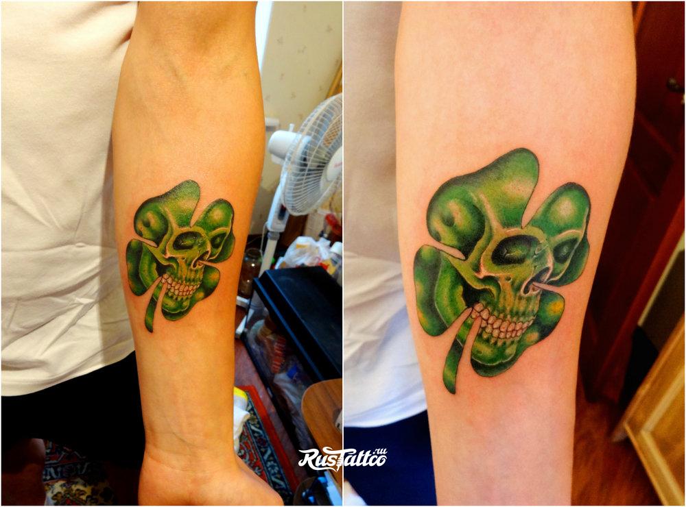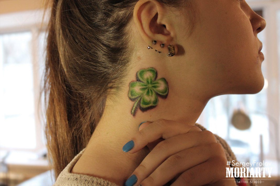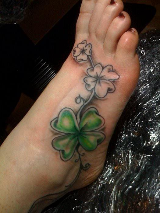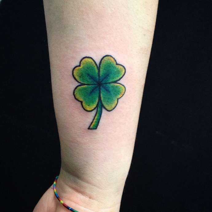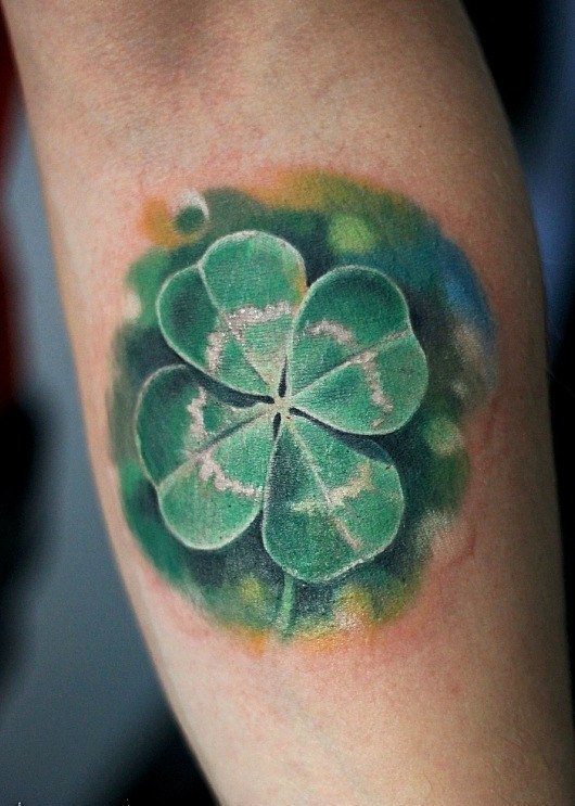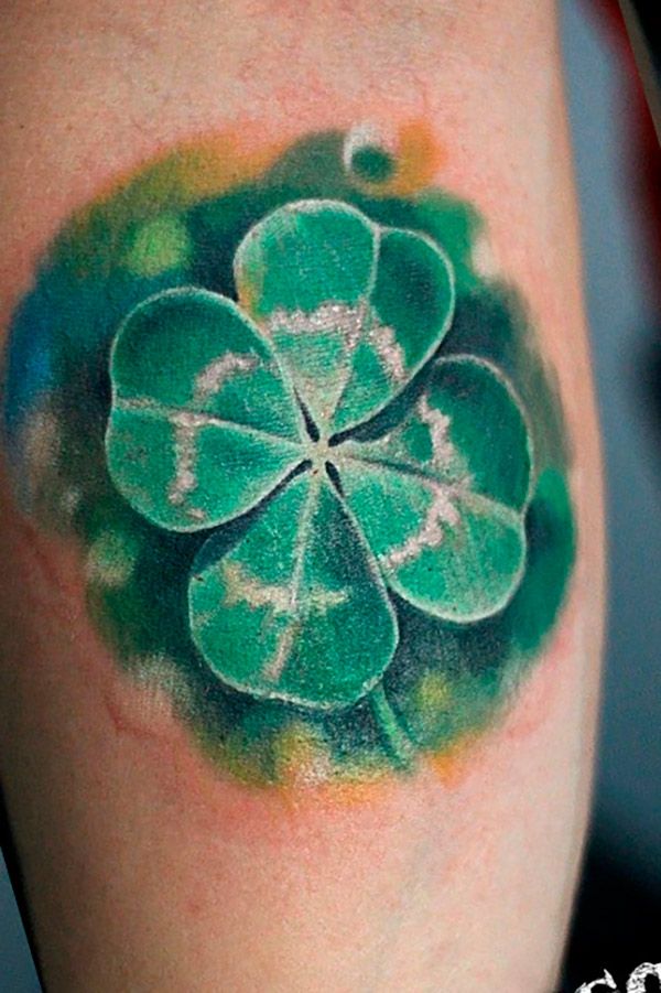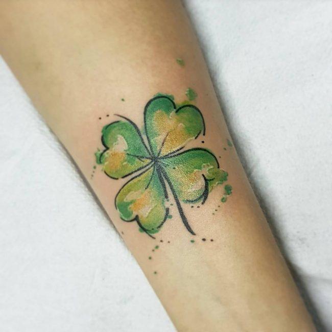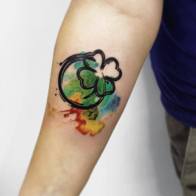 Lors du choix d'une couleur pour effectuer un tatouage avec une image de trèfle, les maîtres conseillent de faire attention au vert, à l'or ou à l'argent. Ils sont considérés comme traditionnels pour cette image. Dans de telles couleurs, le dessin sera naturel et beau.