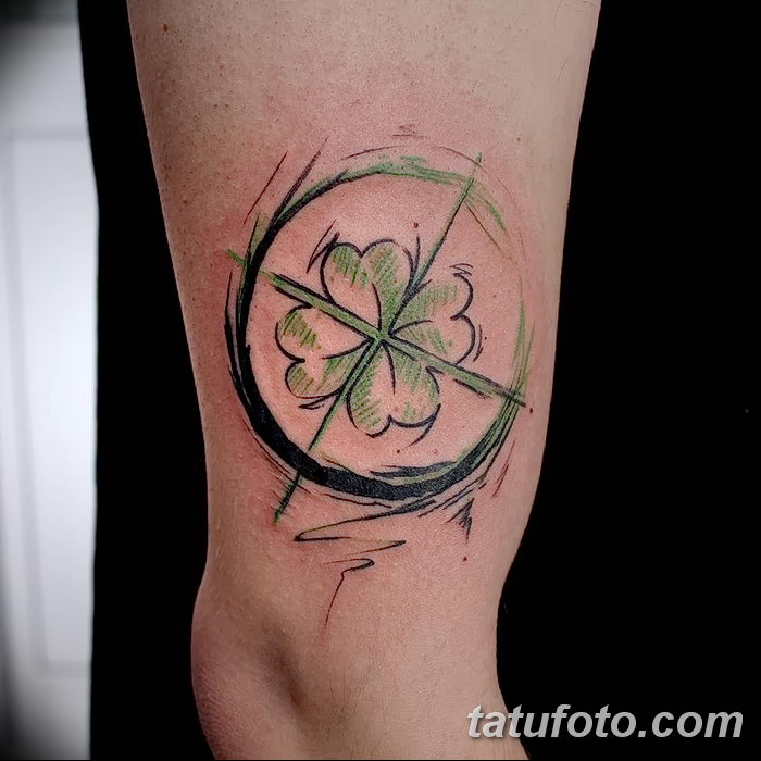 Même avec la couleur verte principale du trèfle, des espaces blancs peuvent être présents dans le tatouage, ce qui donne tendresse et originalité. La couleur blanche symbolise toujours la pureté et la modestie d'une personne. Une option de tatouage très courante lorsque le trèfle n'est pas complètement peint de n'importe quelle couleur. Vous pouvez simplement créer une fine bordure et laisser le ton chair comme couleur principale de l'image.