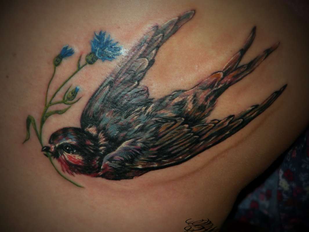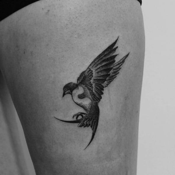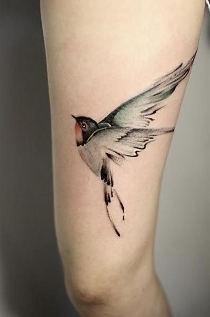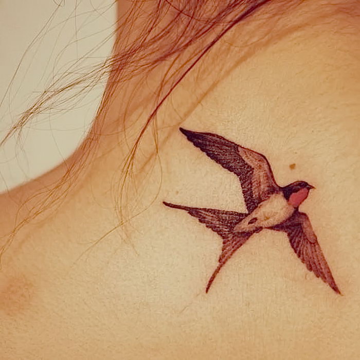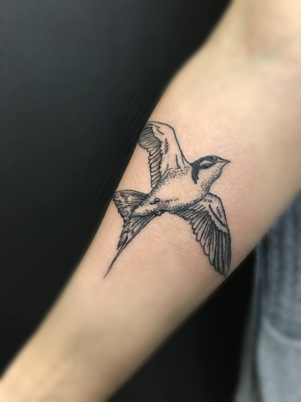 L'image d'une hirondelle en vol symbolise la vie en mouvement rapide et les pensées pures d'une personne portant ce tatouage.