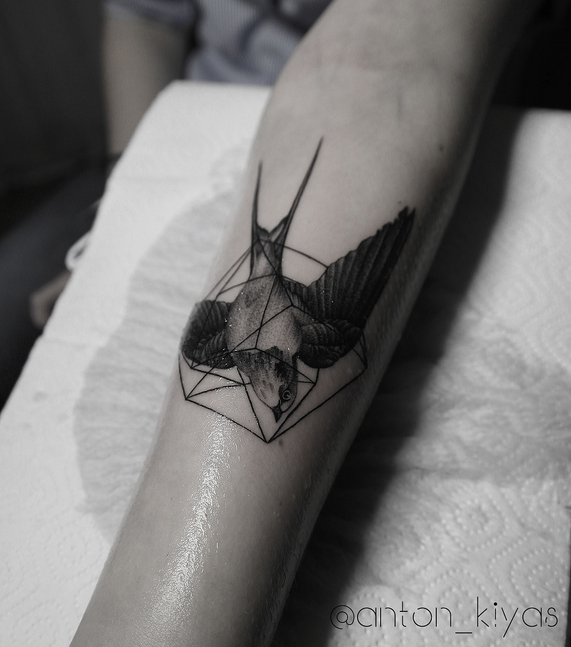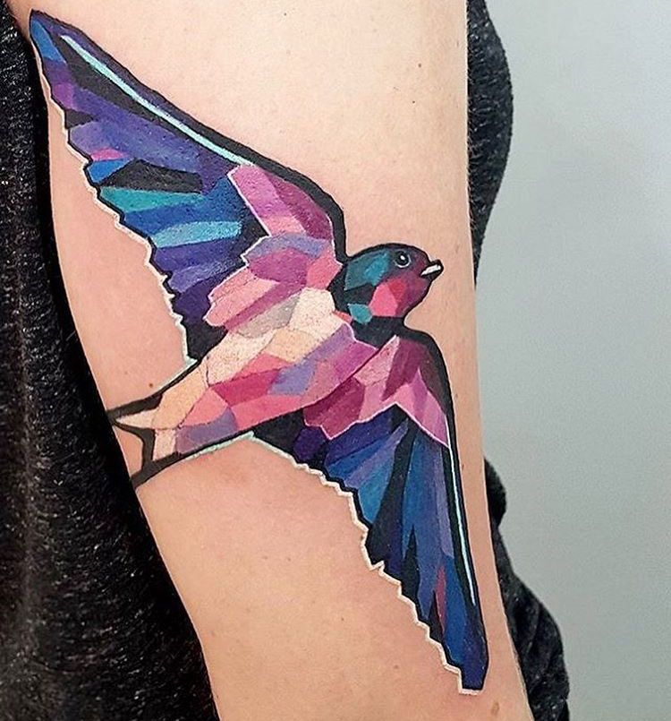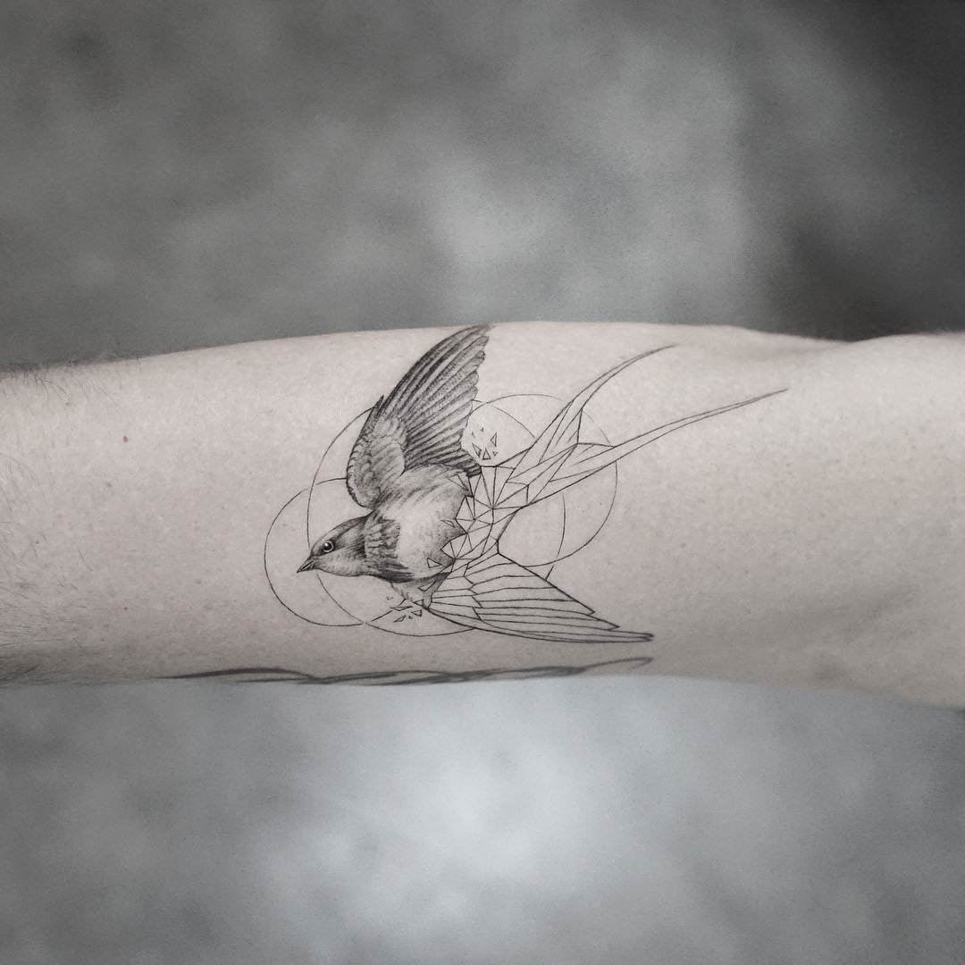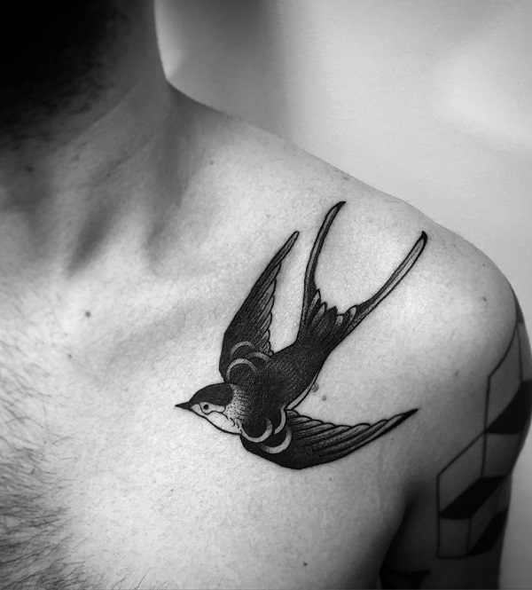 L'image d'une hirondelle en vol symbolise la vie en mouvement rapide et les pensées pures d'une personne portant ce tatouage.