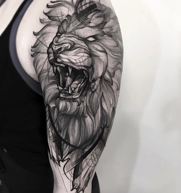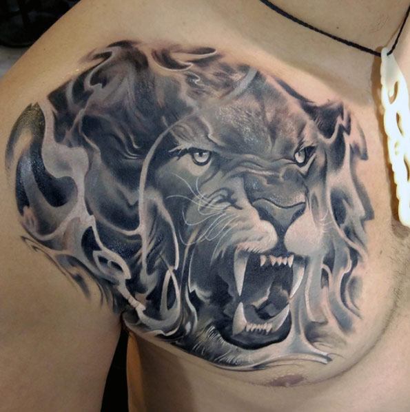 Tatouage de Lion attaquant