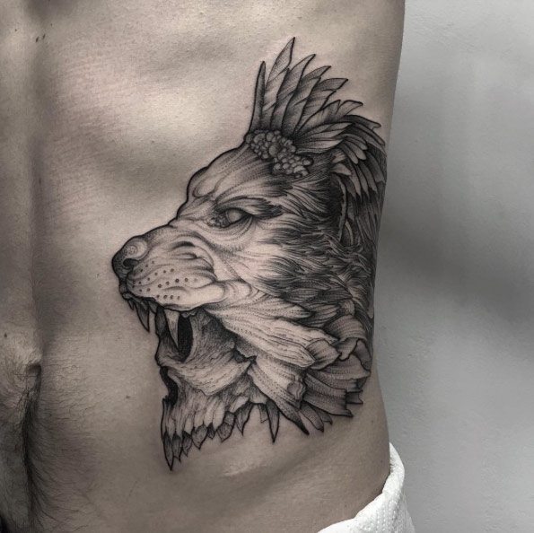 Tatouage "Lion au combat"