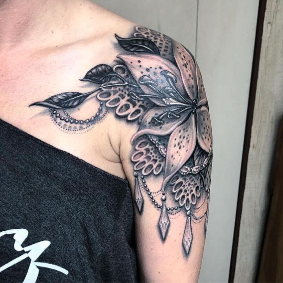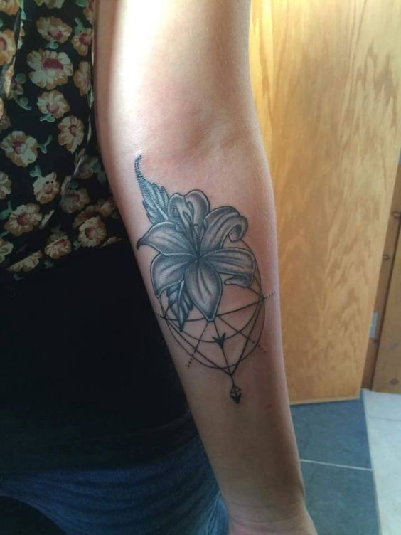 Un lis charmant, décoré dans un ton sombre, parle de votre attitude envers la beauté ensorcelante de la nuit et les désirs secrets et chéris. Les lis noirs avec des notes d’innocence et de naïveté ont une apparence très belle et envoûtante. Un tatouage en noir avec une fleur aussi merveilleuse est très différent des images en couleur, car elles dissimulent un reflet de passion. Vous devez porter une attention particulière à la bordure de votre image, à l'arrière-plan et à la saturation de ses couleurs en fonction du style du tatouage.