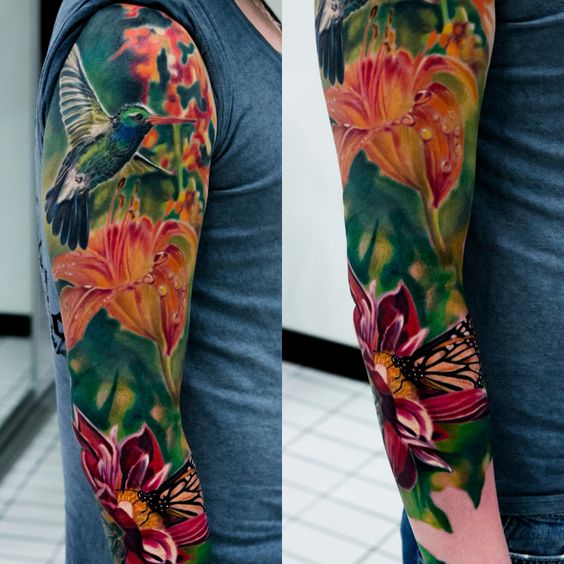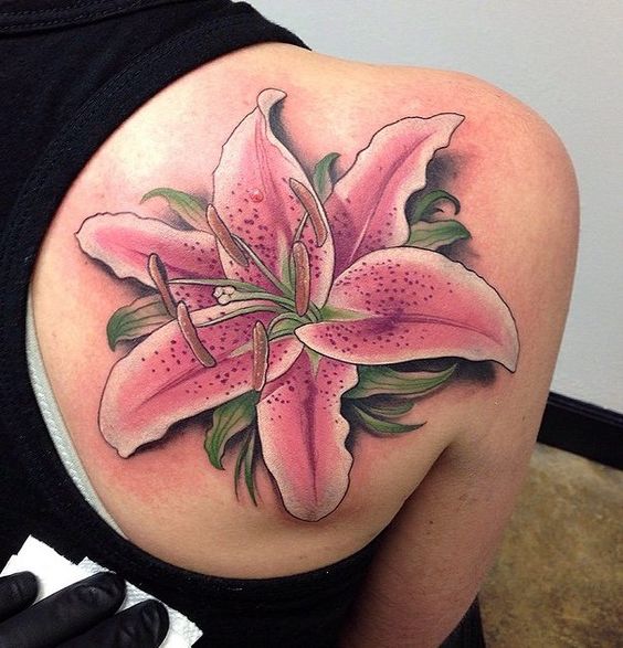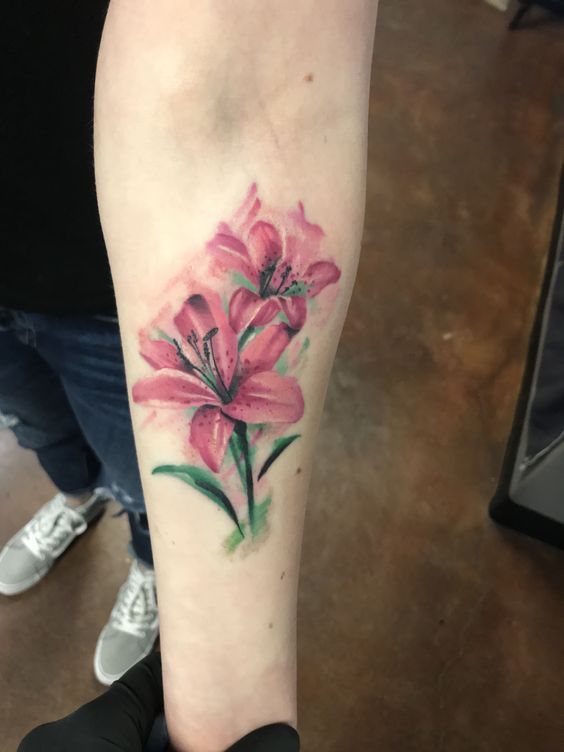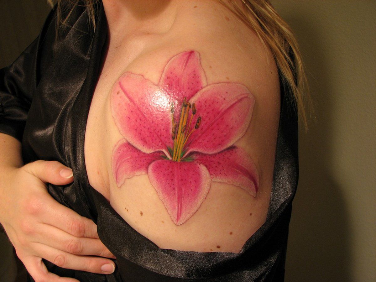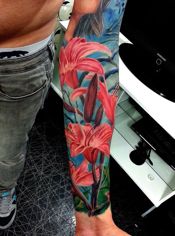 Pour les jeunes filles qui souhaitent exprimer leur délicatesse, leur beauté et leur tendresse, un tatouage avec une image d'un lis rose délicat sur sa main aidera à cela. Manchon de tatouage avec des lis semble assez accrocheur et belle. L'image d'un lis au style fantastique est le plus souvent utilisée par les amateurs de contes de fées et les adeptes de mythes. Des compositions entières avec des lis représentent certains habitats des elfes. En effet, selon le folklore médiéval allemand, ce sont les elfes qui ont un lien inextricable avec les bourgeons de lys et finissent leur vie avec leur flétrissement.